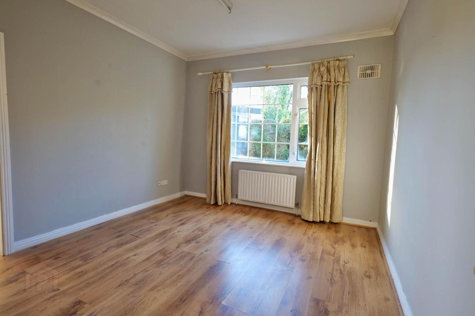 3.8m x 2.4m Timber floor, built-in wardrobe, power points, radiator, curtains