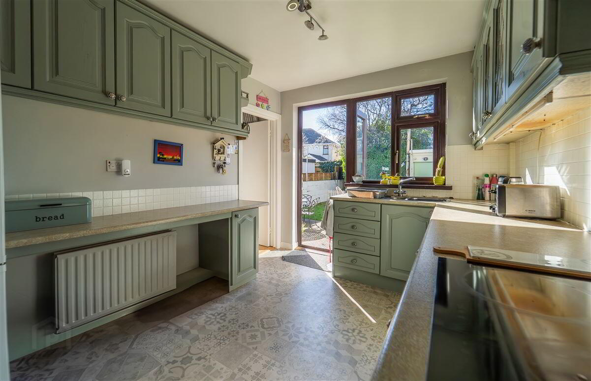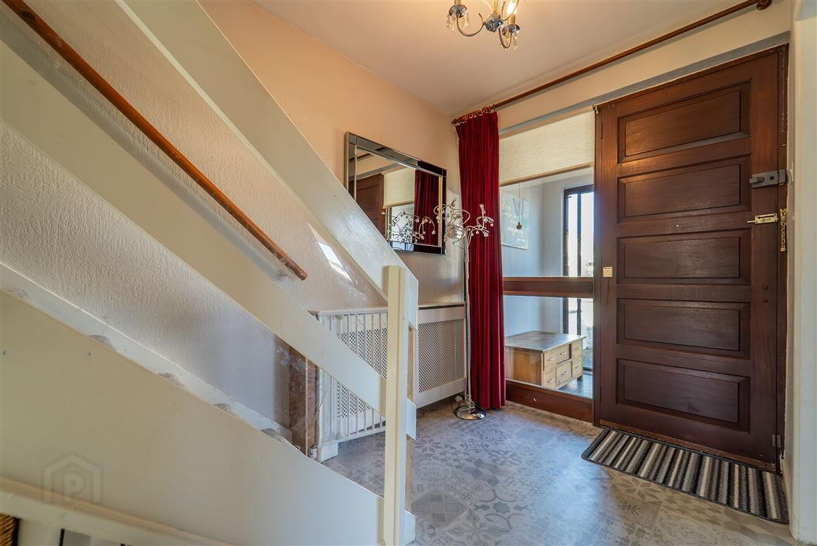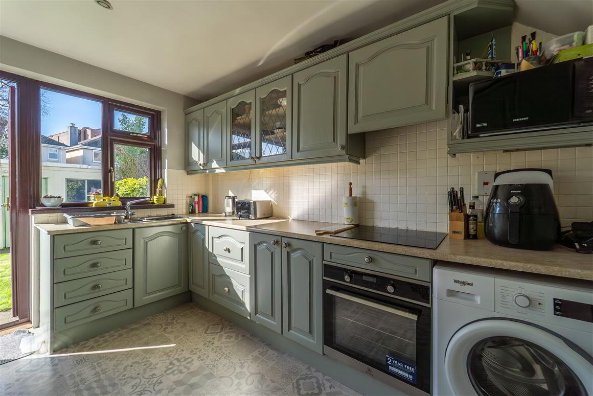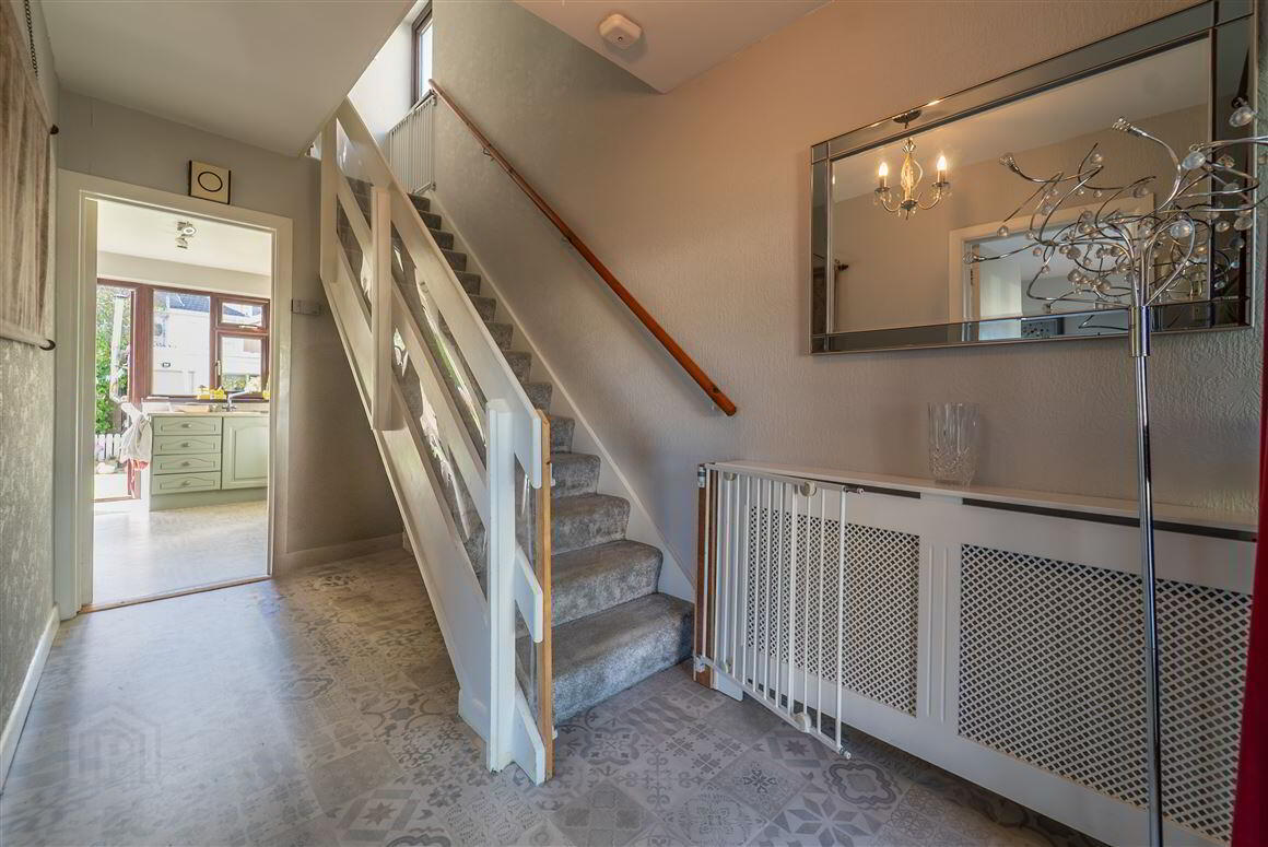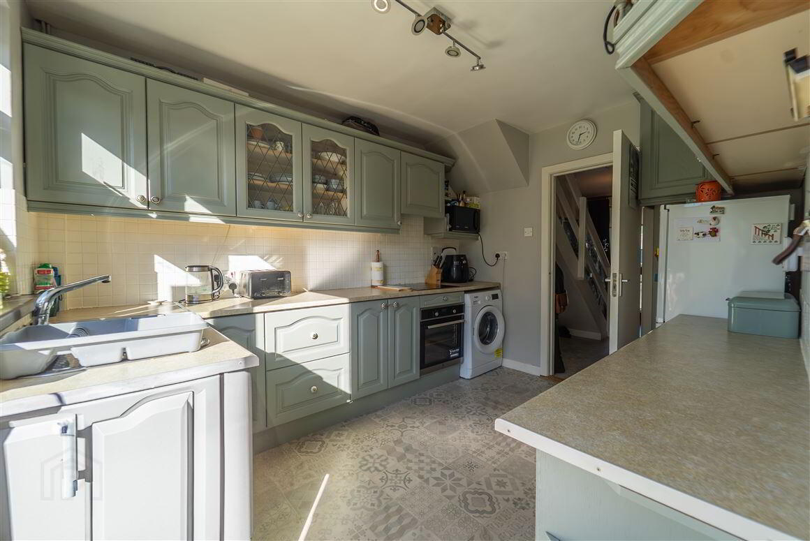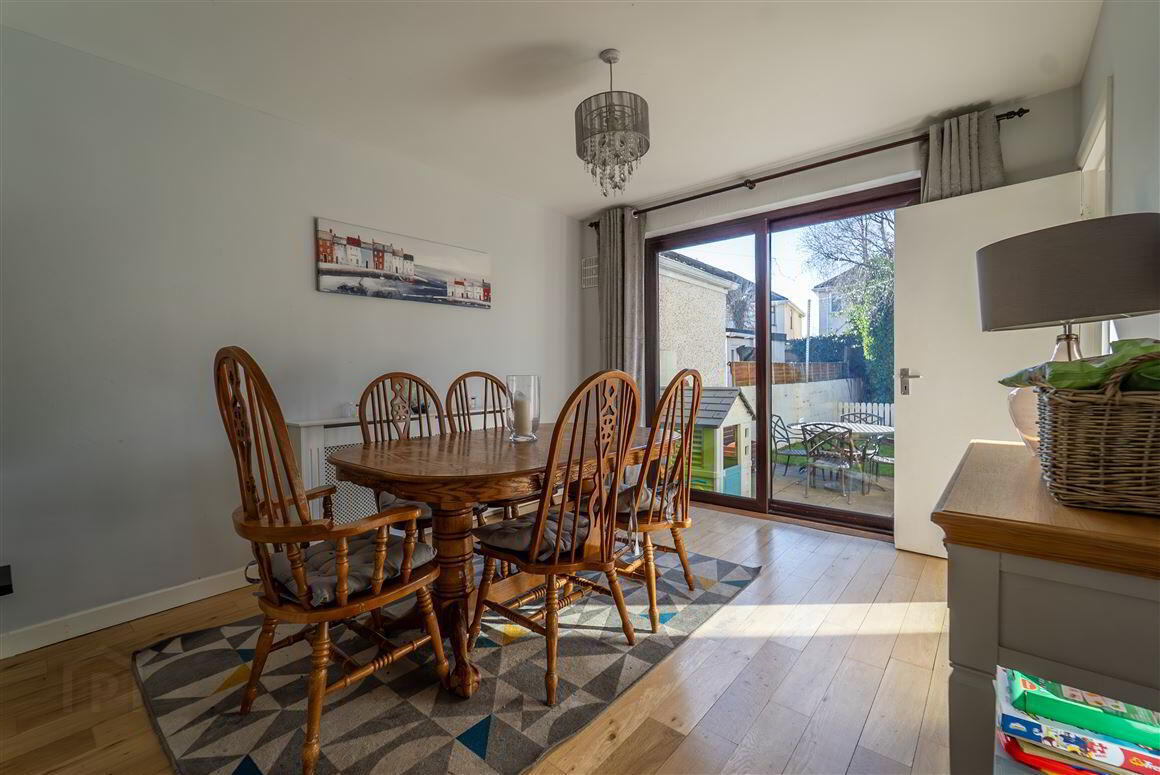 When entering the house you are welcomed by an entrace hallway to bring you into the living room with a homely feature fire place . The living room then brings you into the dining room. This area is seperate from the kitchen, ideal for hosting guests or even working from home away from the busy kitchen. The kitchen benefits from its fully fitted presses and counter tops. Walking into the large private back garden you have a combination of patio and grass along side a large garage. The rear garden offers a private and generous outdoor space, while the front of the property features a driveway with convenient off-street parking.