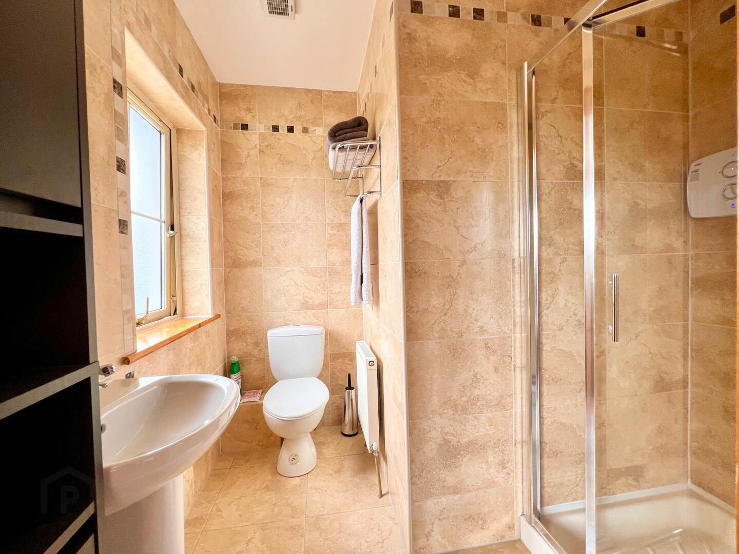 2.1m x 2.3m Fully tiled, wc, whb, electric shower, radiator