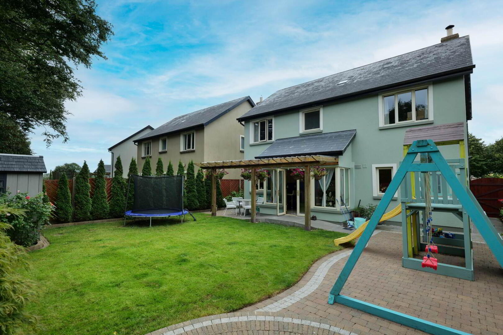 To the front, this home is approached by a cobble lock driveway to the front with ample off-street parking for two or more cars. Side entrances lead to the enclosed rear garden which is remarkable with a manicured lawn, paved patio area for outdoor entertaining, covered pergola for those chilled summer nights, colourful children`s play area complete with swings and slide, trampoline and a small garden shed. The boundary is planted with mature conifer tress, shrubs and floral borders and the garden has the added bonus of not being overlooked, offering immense privacy.