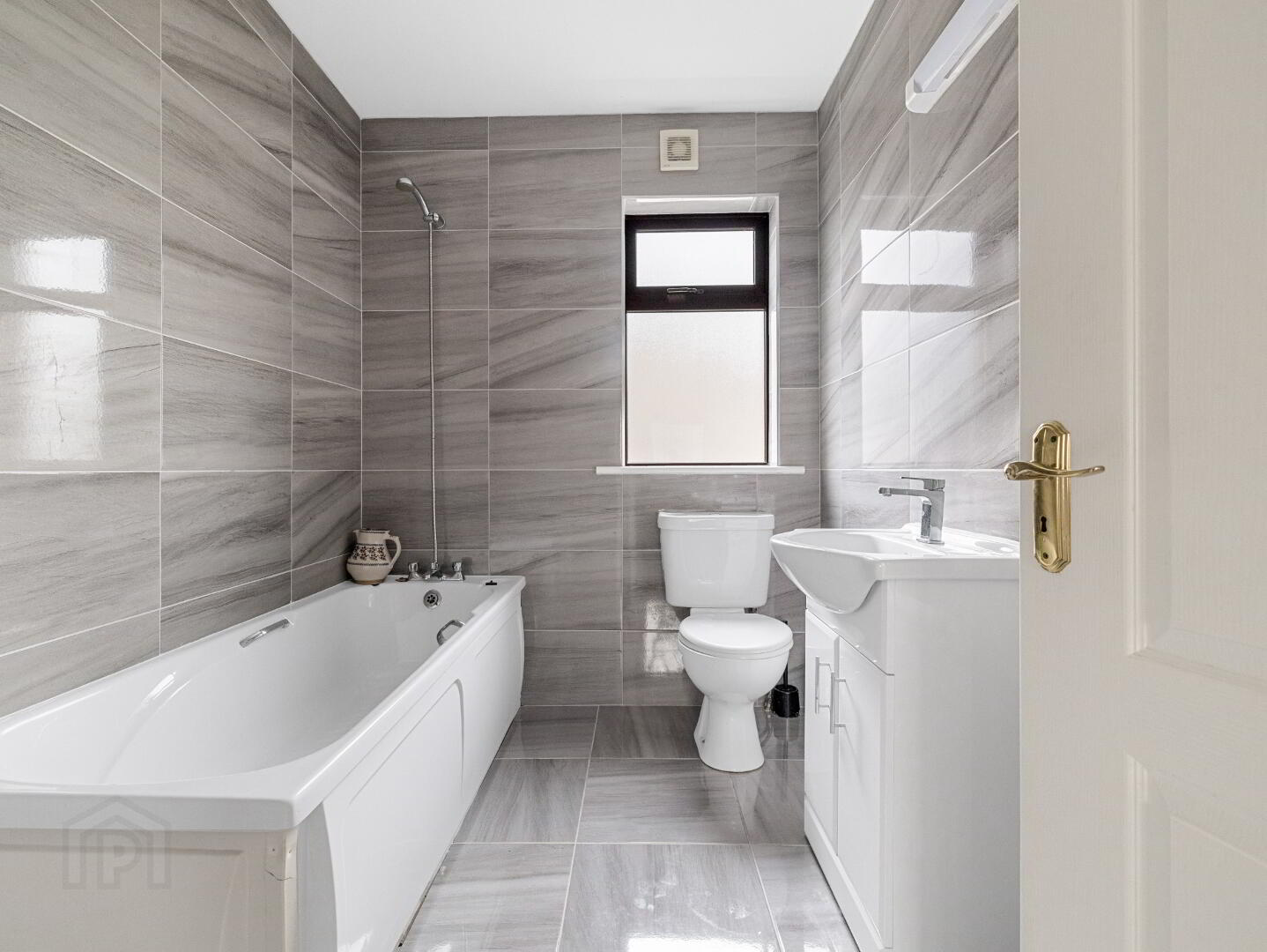 Family Bathroom – 5.6 m² fully tiled with bath wc & whb.