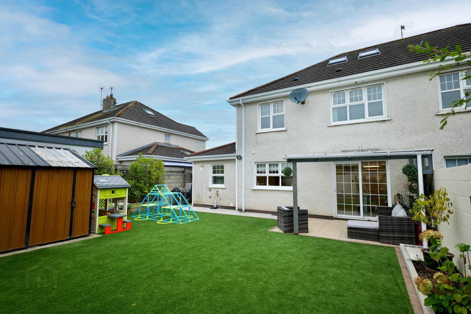 • Recently landscaped rear garden with Patio area, Pergola and low maintenance artificial grass