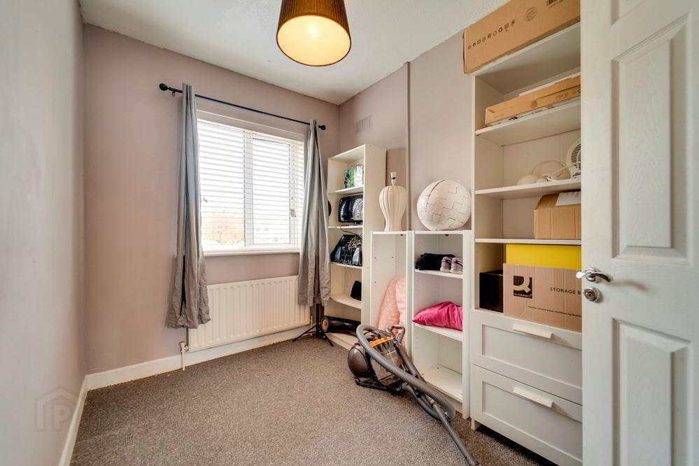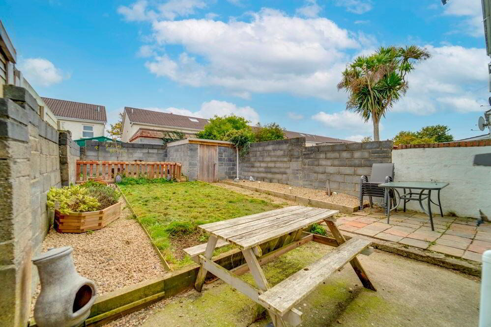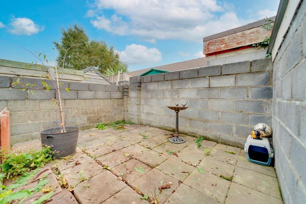 To the front of the house is the driveway with off street parking and side access to a spacious back garden (with shed)