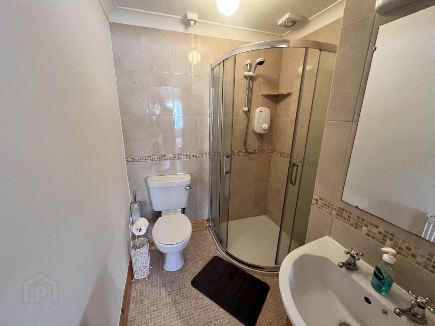 Fully tiled with matching bath, WC and WHB.