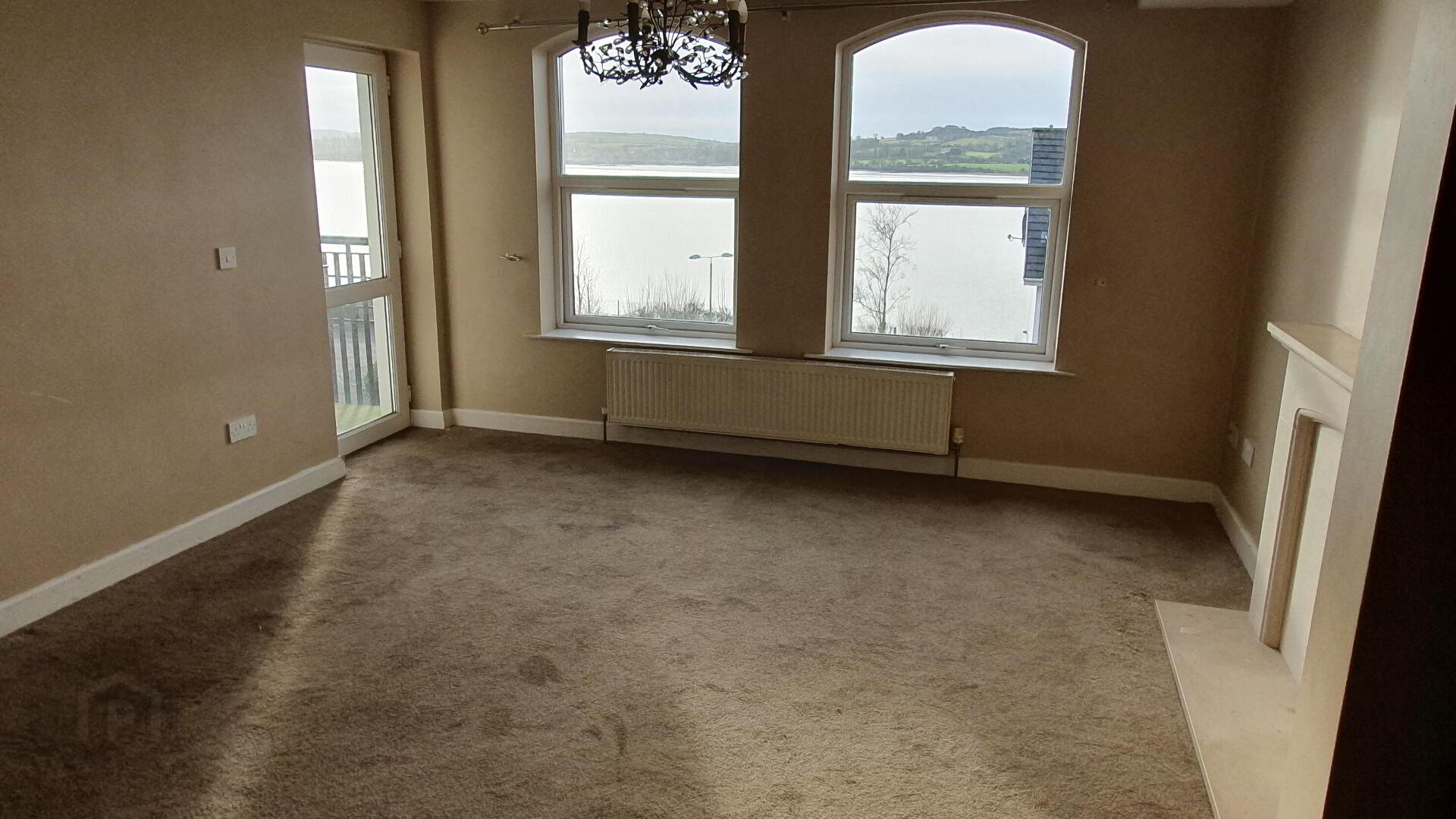 4.00m x 3.90m Open plan with kitchen, fireplace surround and hearth for electric fire, T.V. Point, windows with view of Bay, door to balcony