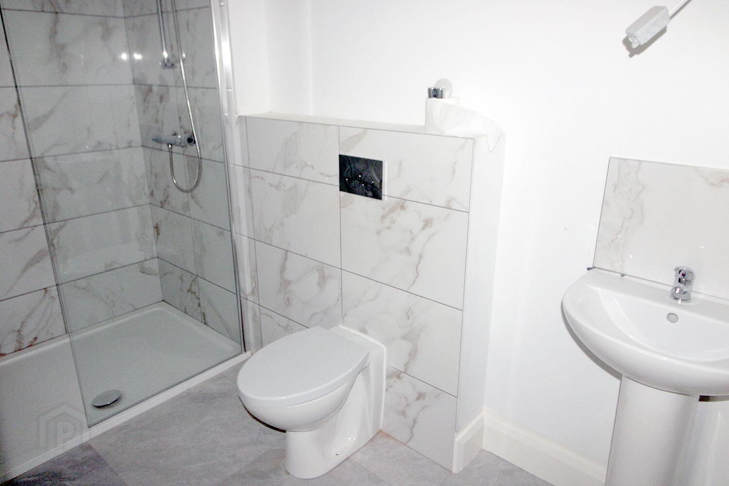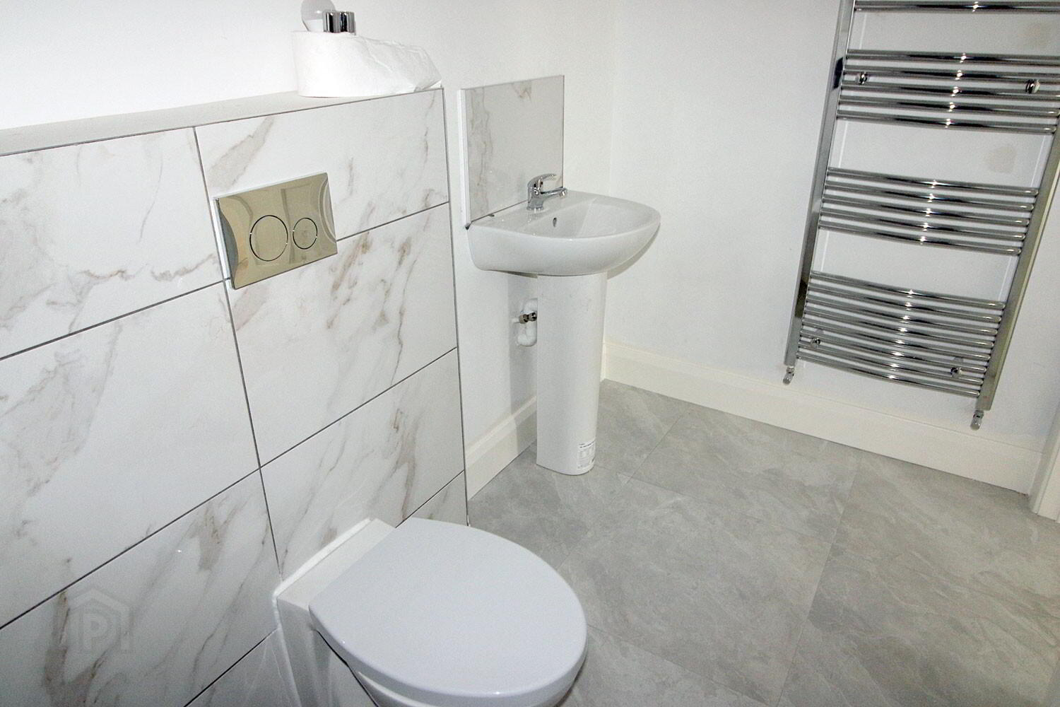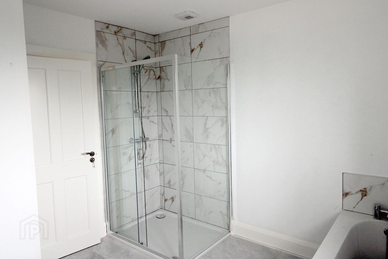 Upstairs, there are three well-proportioned bedrooms, including a main bedroom with tiled en suite, along with a stylish family bathroom with tiled flooring and featuring a separate shower unit.