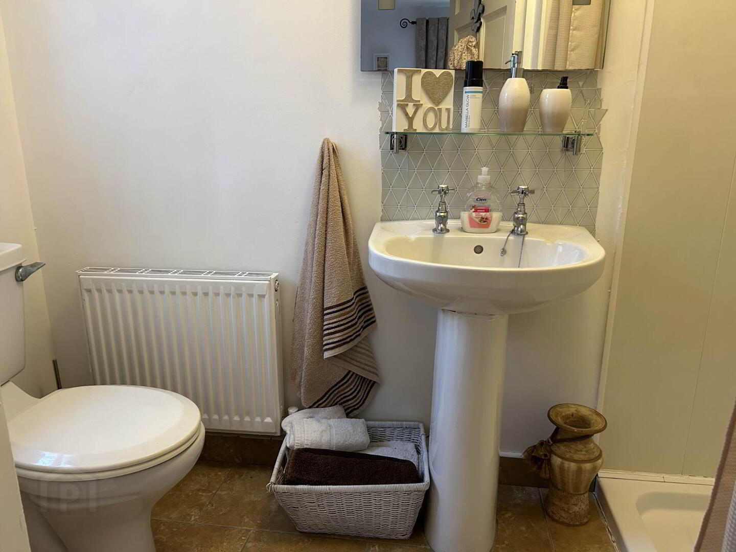 Tiled, Pump shower unit, WC, WHB