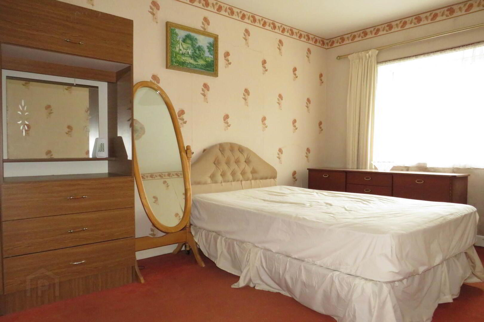 4.45m x 2.70m Carpet, curtains, net curtains, power points, radiator