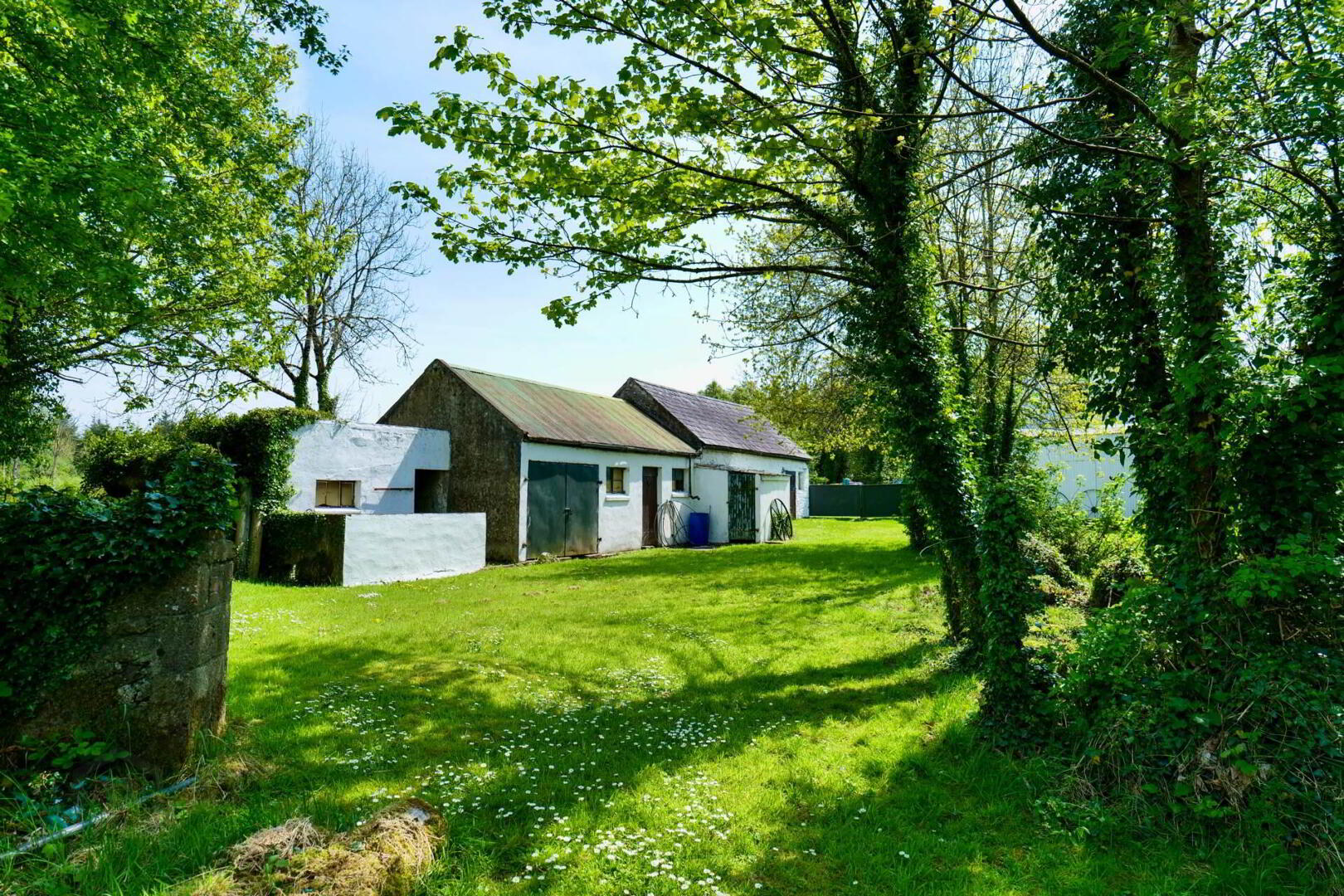 Single glazed windows, oil fired central heating, private water supply, a range of old ancillary buildings, stables, workshop/haybarn, additional storage sheds.