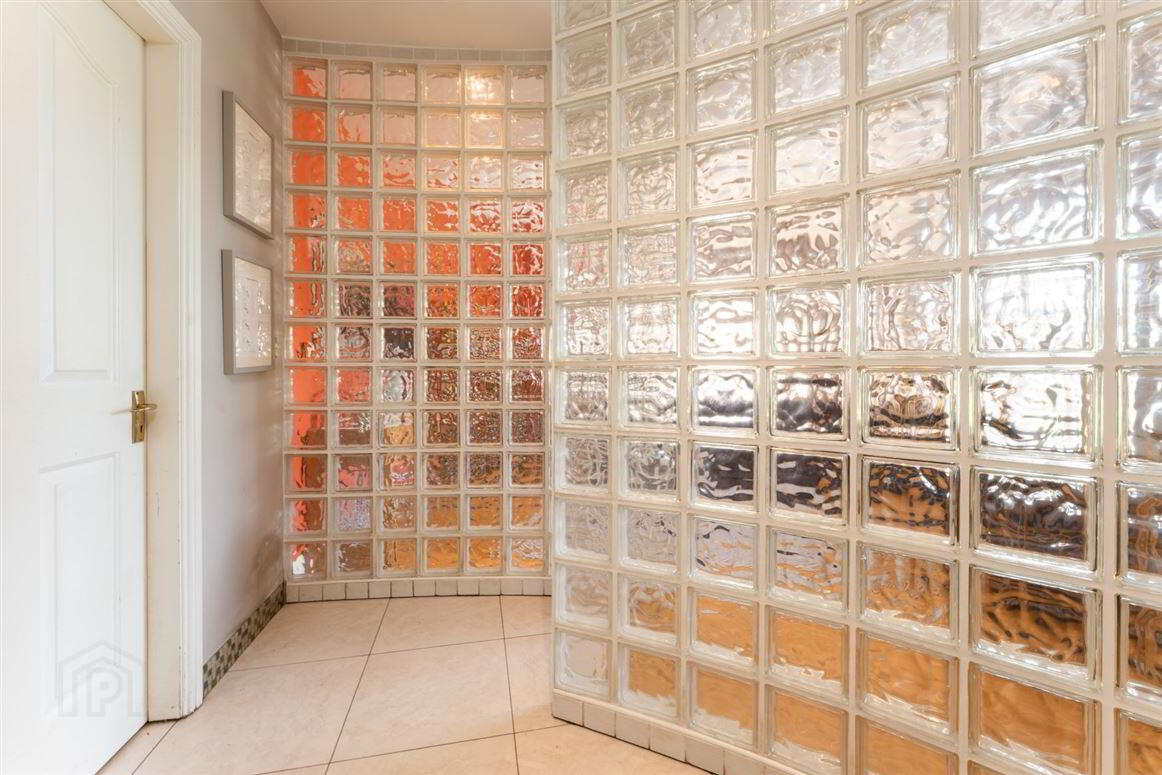 As one approaches the entrance, one can start to appreciate the contemporary architect designed unique house layout including a Georgian fan light window on the front entrance door.