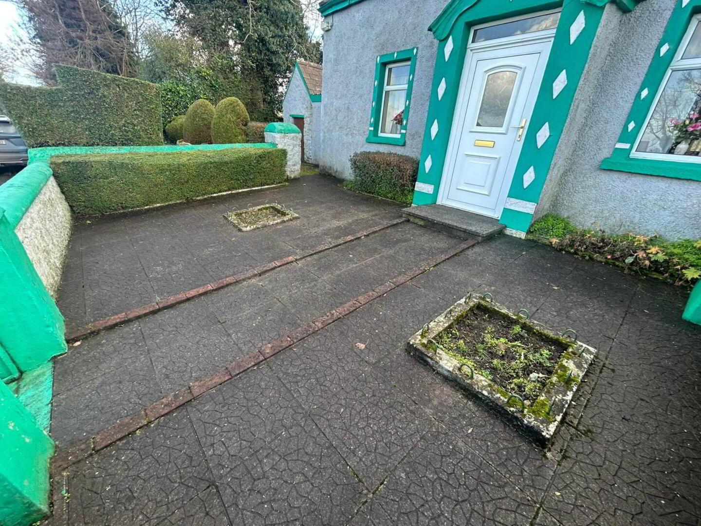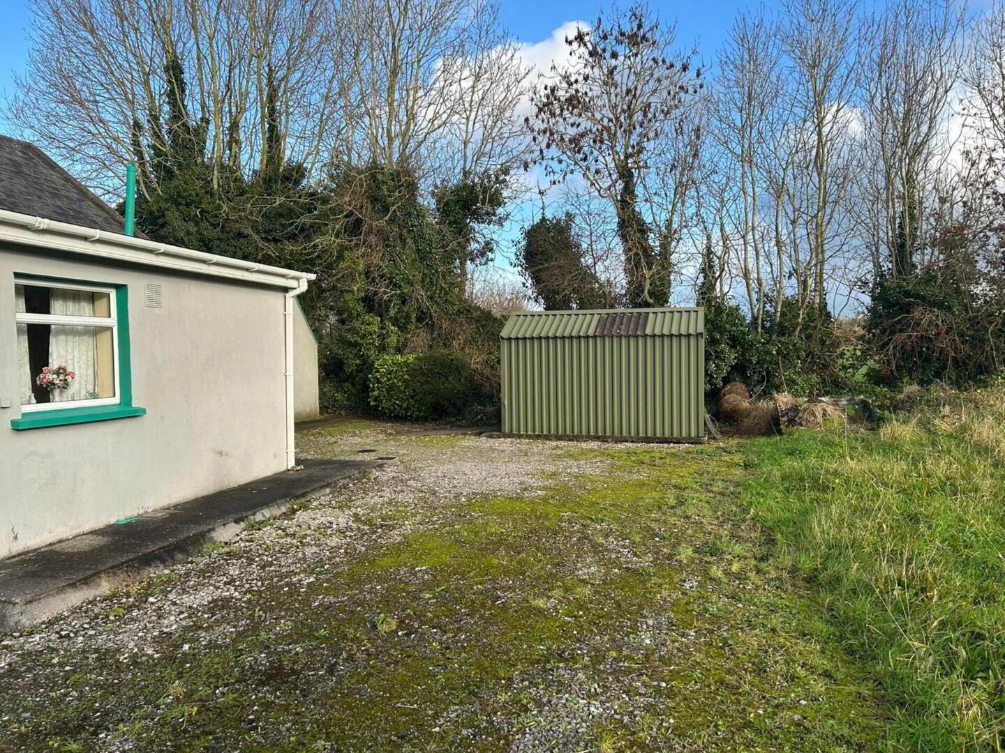 Approached by a walled gated entrance with paved front yard and side access to the rear garden. There are two storage sheds to the side and a galvanised garden shed to the rear. One of the stand out features of this property is the large, private site. There is a separate vehicular entrance at the side of the property, providing ample off-road parking and plenty of scope for further expansion subject to the appropriate planning permission.