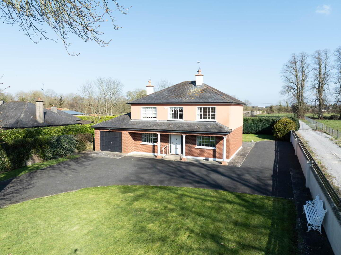 This spacious family home boasts four bedrooms, two bathrooms, two reception rooms, is fully alarmed with oil fired central heating, walls have been pumped with insulation, landscaped lawns to front & rear surrounded by mature trees & shrubbery, outside lights, large patio area to rear, steel tech shed, attached garage and ample parking.