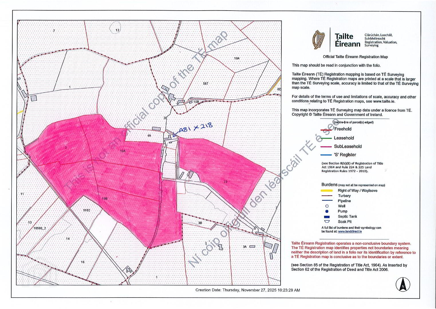 From Carrickmacross Main Street continue out the RI78 for 4km turn left, continue for 800m , turn right. A81 X218 Lisnakelly, Co. Monaghan land is located each side of the house.