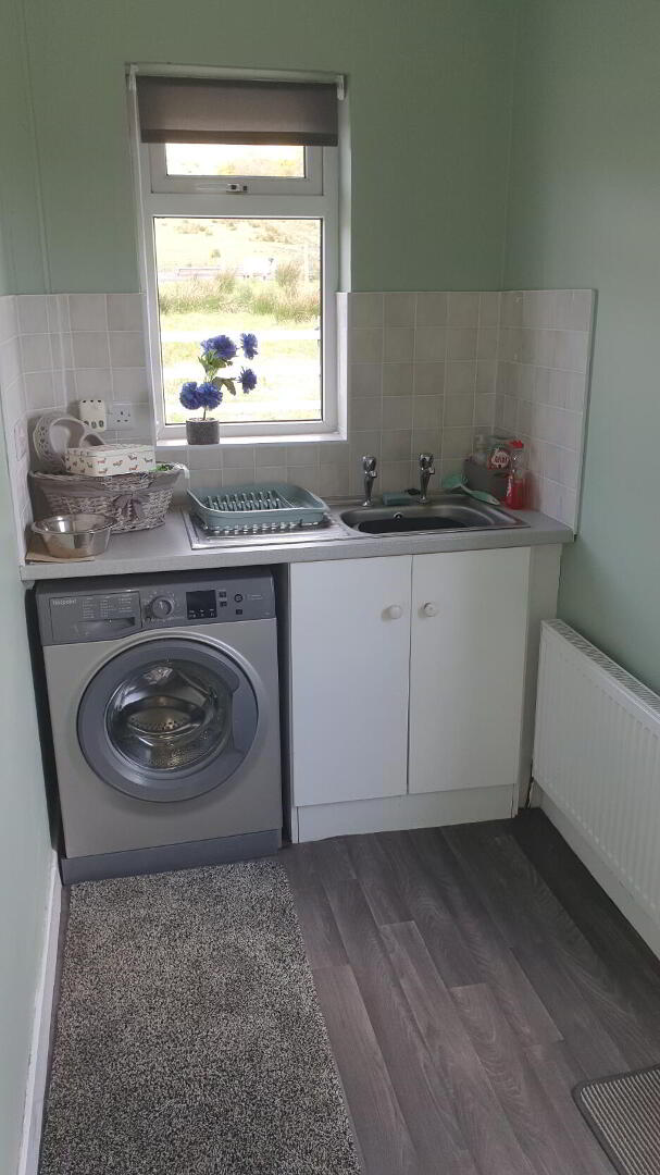 2.40m x 1.50m Fitted unit, kitchen sink, plumbed for washing machine, back door