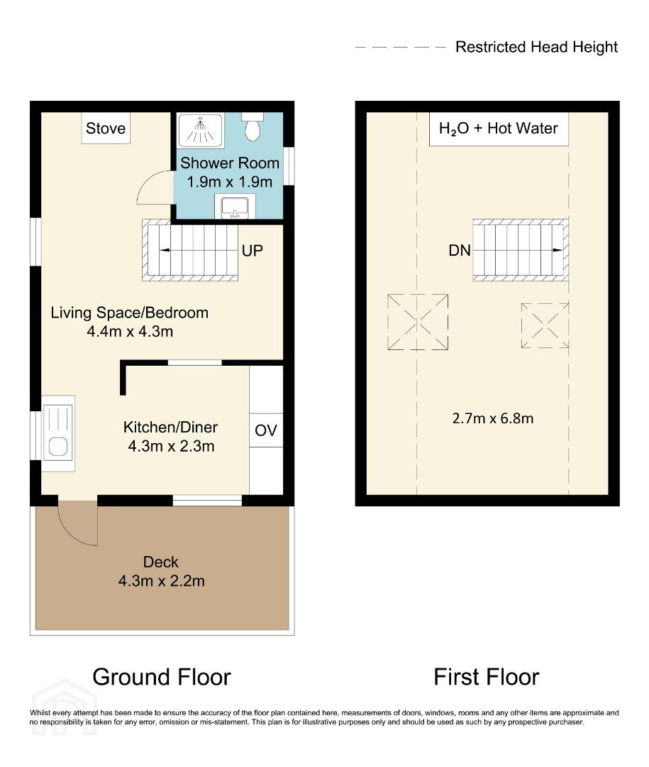Living & Sleeping area (4.3 x 4.4) with solid fuel stove
