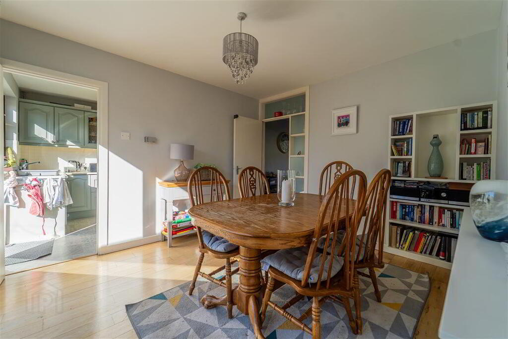 When entering the house you are welcomed by an entrace hallway to bring you into the living room with a homely feature fire place . The living room then brings you into the dining room. This area is seperate from the kitchen, ideal for hosting guests or even working from home away from the busy kitchen. The kitchen benefits from its fully fitted presses and counter tops. Walking into the large private back garden you have a combination of patio and grass along side a large garage. The rear garden offers a private and generous outdoor space, while the front of the property features a driveway with convenient off-street parking.