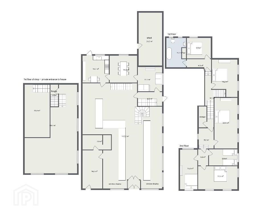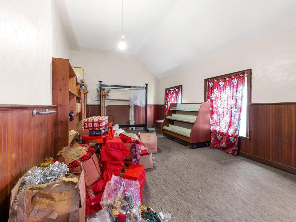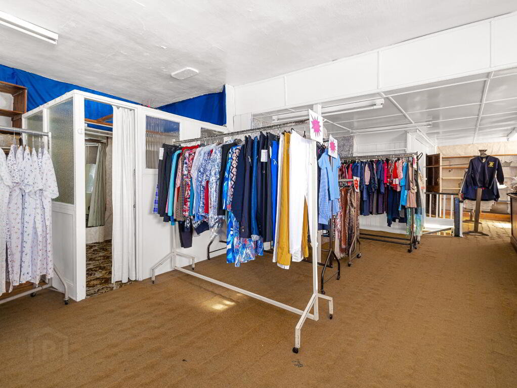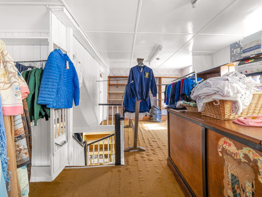 Spacious shop area with large display windows, counters, and timber flooringMany original features intactStaircase leading to first-floor shop area with changing roomsTwo store rooms adjacent to the main shopOfficeKitchenDining area