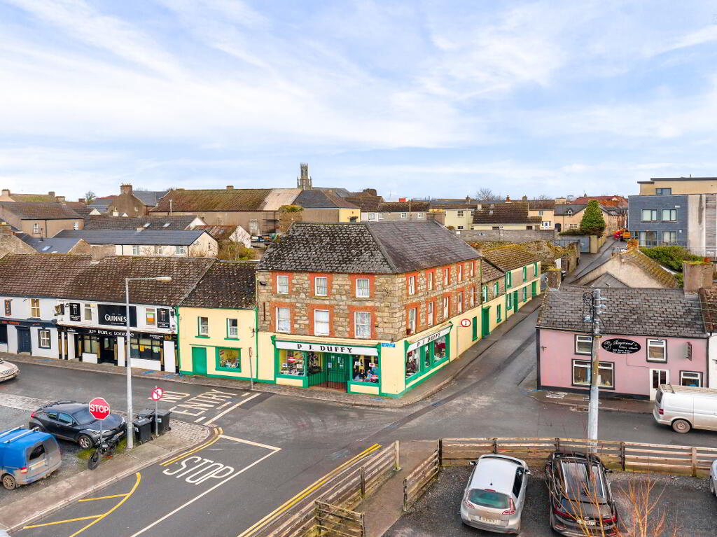 Occupying a high-profile corner location, the property benefits from dual street frontage onto Mill Street and Old Chapel Lane. Situated just a short walk from the town square—Tullow’s principal trading and administrative hub—the property is surrounded by restaurants, pharmacies, public houses, a gift gallery, and several well-known supermarkets, making it an ideal setting for continued business or redevelopment into residential or alternative use.