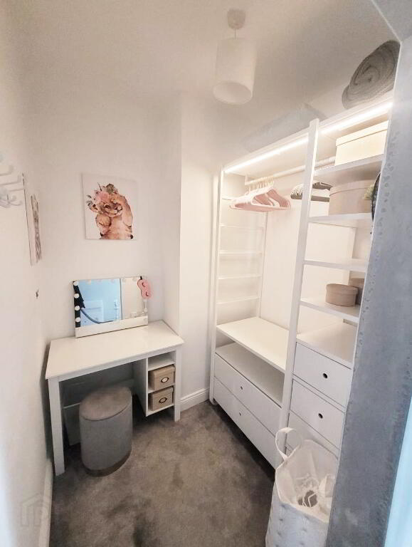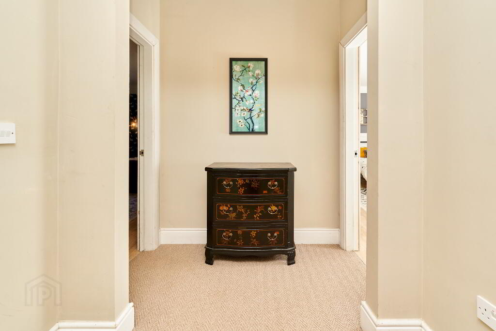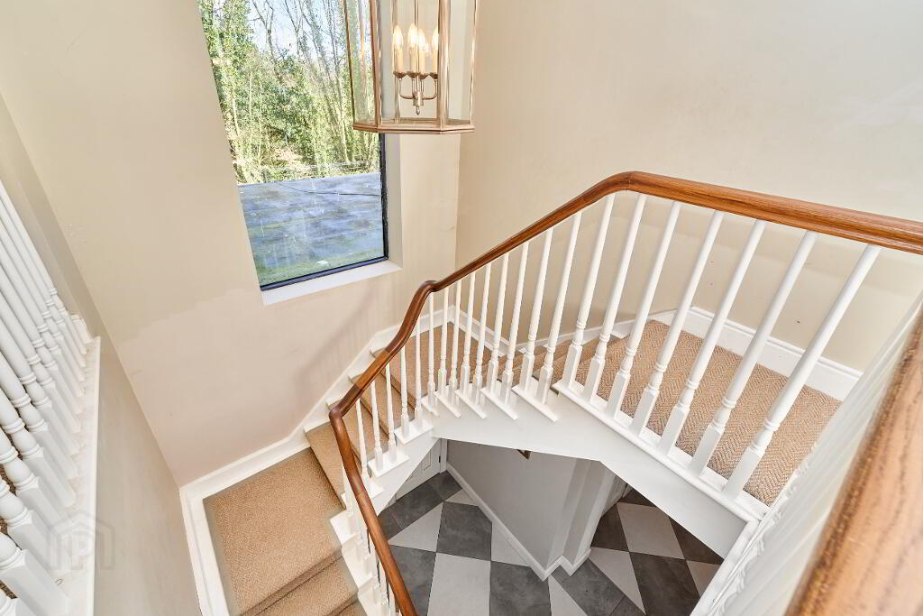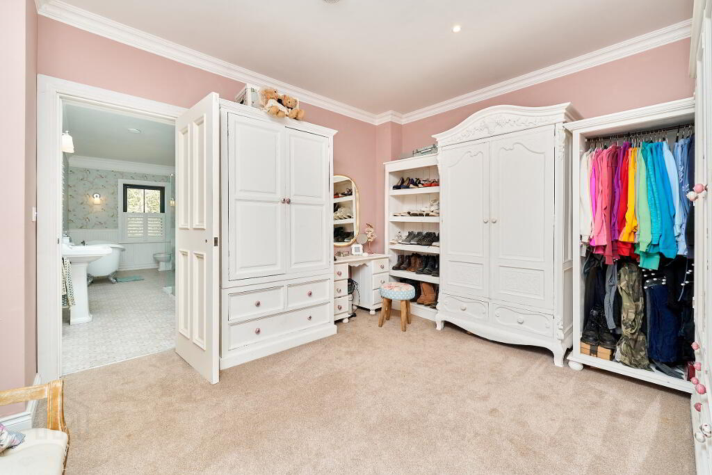The two quarter turn staircase is carpeted and framed with a five inch runner, starting with a curved Georgian handrail and finishing on an L shaped landing. Turning left one finds two large double bedrooms, connected via shared walk-in wardrobe with Jack and Jill en-suite.