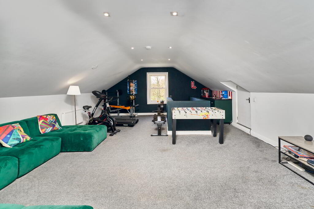 The gift that keeps on giving extends upwards, into the third floor of this sensational property, primarily dedicated to an entertainment suite, housing a gym and cinema style space with refreshment area, extending to further guest accommodation comprising of a twin bedroom, large double bedroom currently occupied by a textiles and crafts den and a shared bathroom. Attic storage space housing first fix heat recovery system completes the interior.