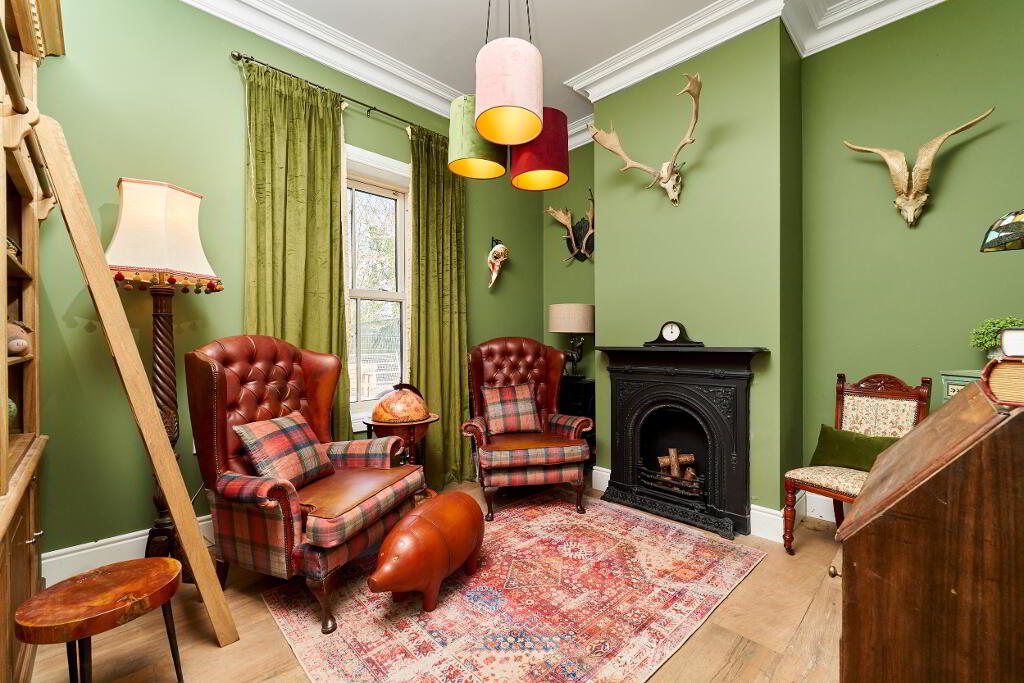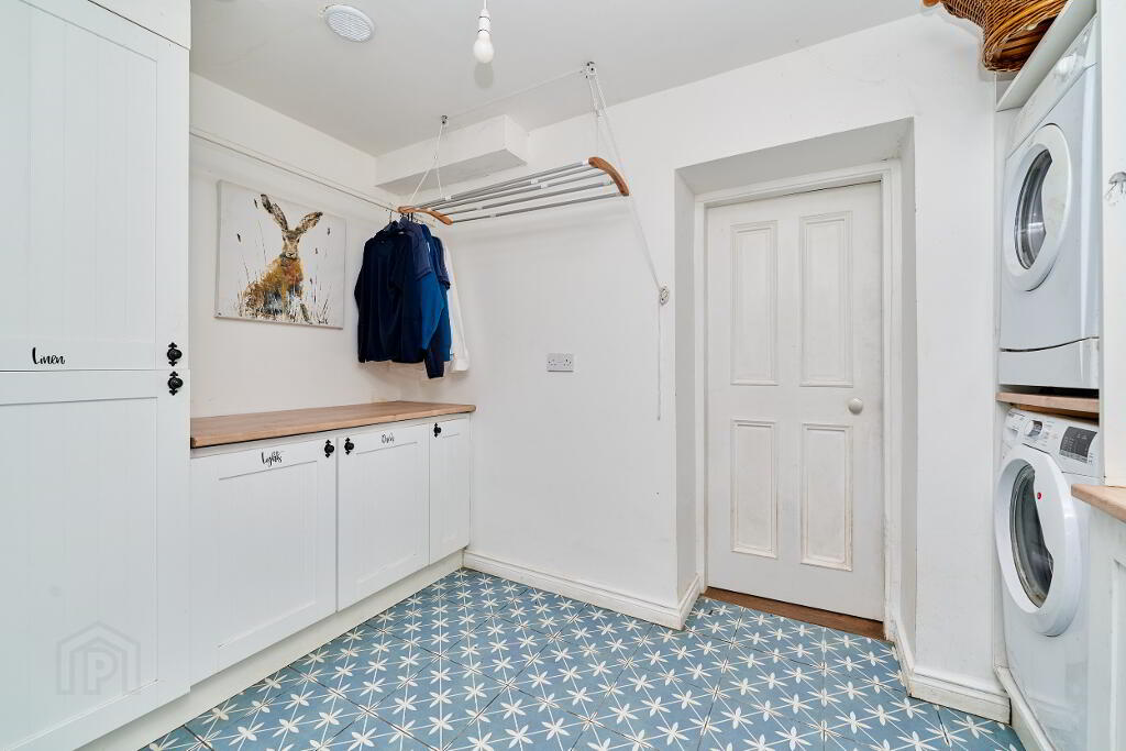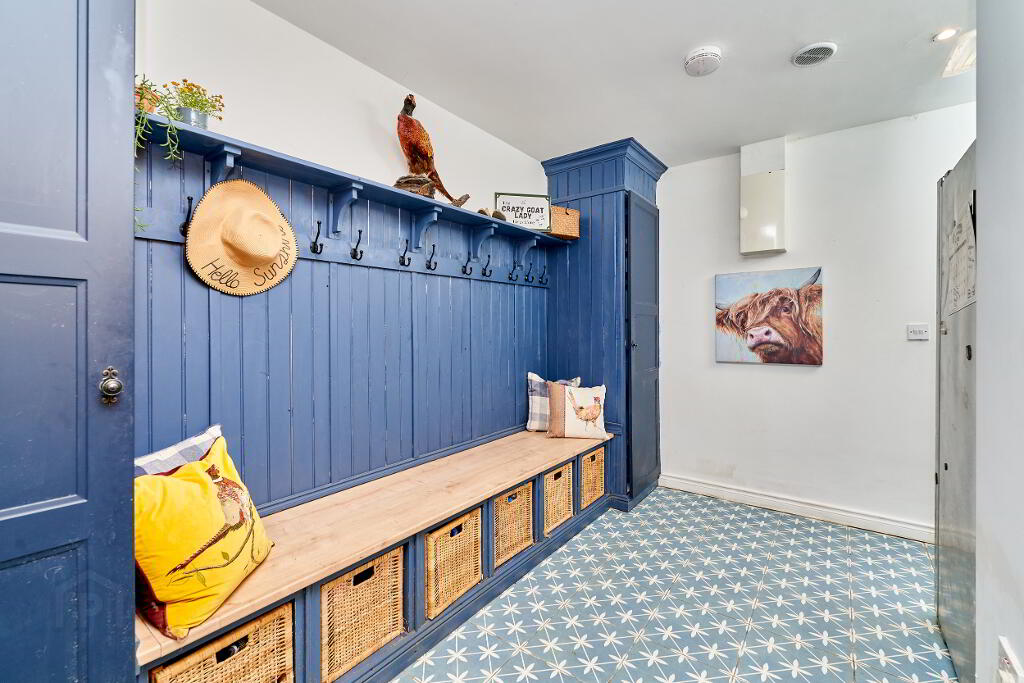 Just off the kitchen you’ll find a utility come laundry room that leads through to a boot and cloak room with back door access. The ground floor is entirely wrap around and finishes through an archway in the hall to a cozy, old world snug library, with hardwood effect tiling and a downstairs WC.
