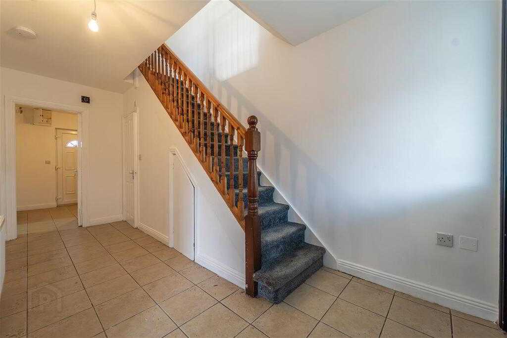 REA McGee are delighted to present this excellent end-terrace house to the market. The property briefly comprises of an entrance hallway, open plan living room and kitchen, utility room, and one w/c downstairs. Upstairs consists of the main bathroom, three double bedrooms, and one en suite. There is storage space under the stairs and in the attic. The property benefits from off street parking and a large rear garden of c.98sqm with side access. The property has gas heating and modern double glazed PVC windows. The property is presented in excellent condition having being modernised to a very high standard.
