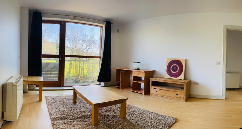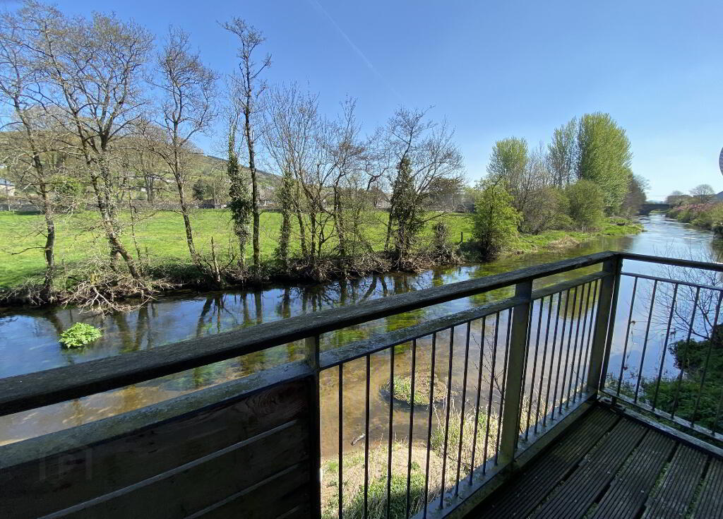 Spacious living area with door onto the external balcony. The external balcony is a real joy - overhanging the River Slaney and delivering beautiful views.