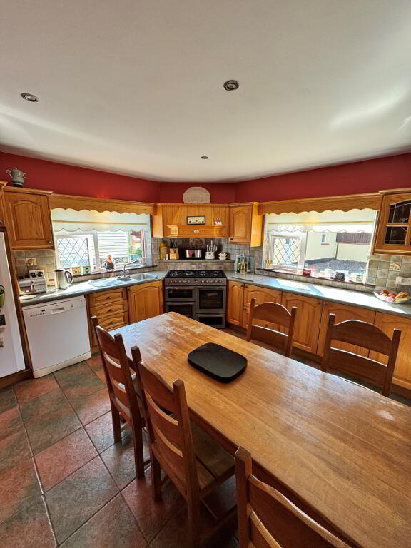 Kitchen: (4.7m x 4.3m) Fitted units,Flavel Double Oven/ Hob, Tiled floor, Fridge, Dishwasher