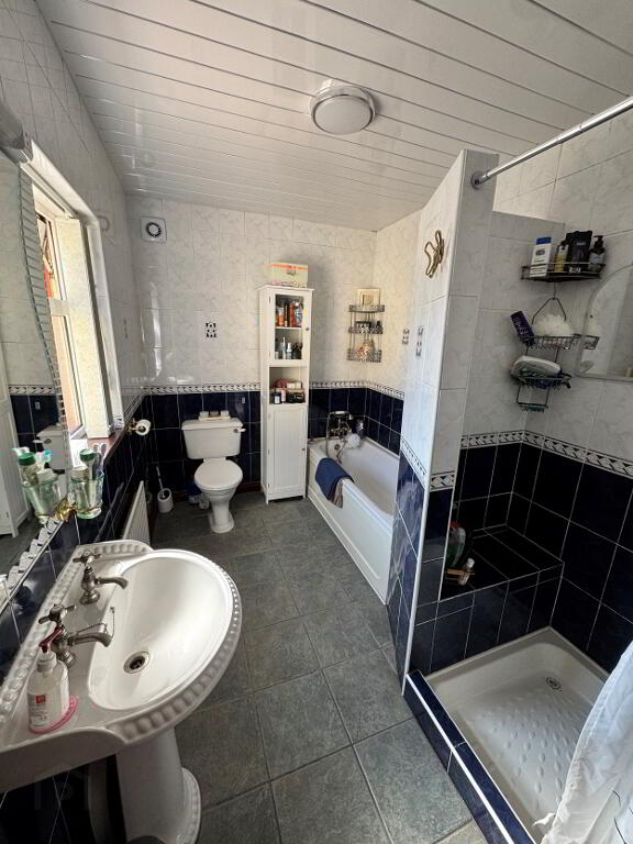 Bathroom: (3.2m x 2.2m) Tiled, Bath, WHB, WC, Electric Shower