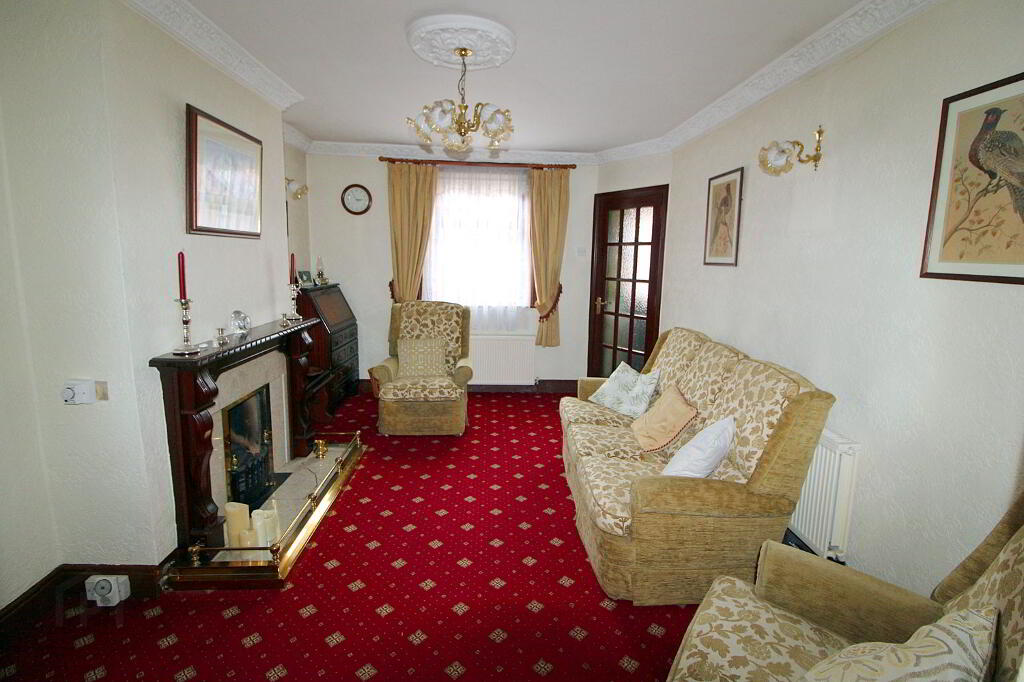 The home has been lovingly maintained over the years but would benefit from some cosmetic updating. The spacious accommodation includes: Entrance Hall, living room with feature fireplace, sitting room, dining room with archway through to the kitchen, three bedrooms, main bed with shower cubicle and 2 with built in wardrobes, and the family bathroom. Oil-Fired Central Heating