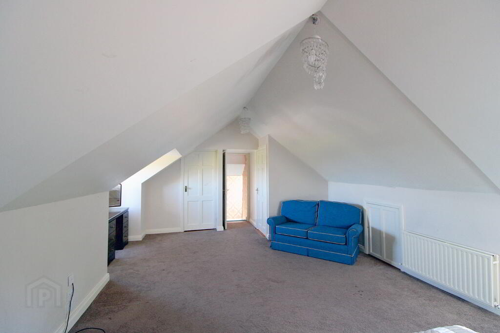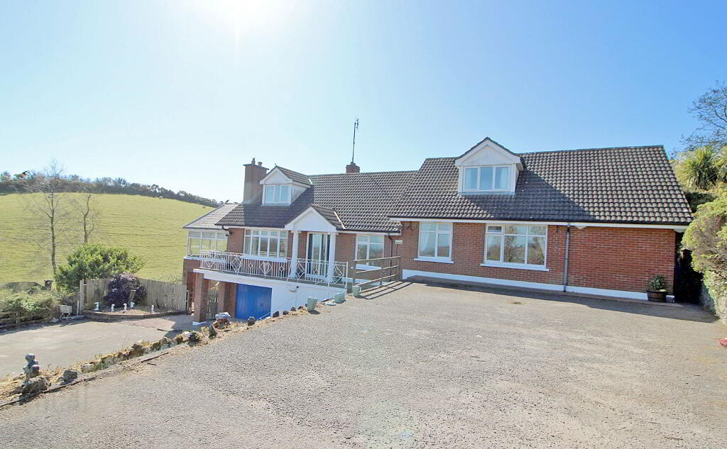 The layout comprises: A welcoming entrance hallway with ceramic tiled flooring, elegant sitting room with a feature fireplace and wood-burning stove, double doors lead into a standout feature of the home – a large, light-filled sunroom that extends outward like a pier on plinths, offering unmatched views of the landscape. spacious, country-style kitchen and dining area with beautifully crafted fitted units, separate utility room for added convenience. A few steps up from the hallway lead to three generously sized bedrooms, the master suite includes a bedroom, walk-in wardrobe, and a large en-suite shower room. A stylish family bathroom completes this level. Upstairs there are two versatile attic rooms a Guest WC and an additional full bathroom with shower unit & corner bath. At the lower level of the house is the Integrated garage and carport. Oil-fired central heating.