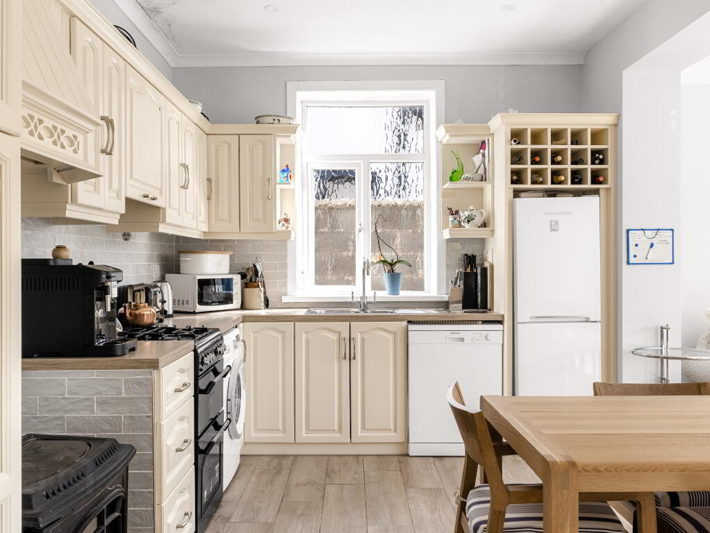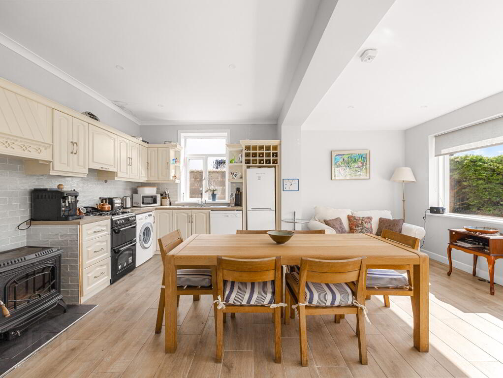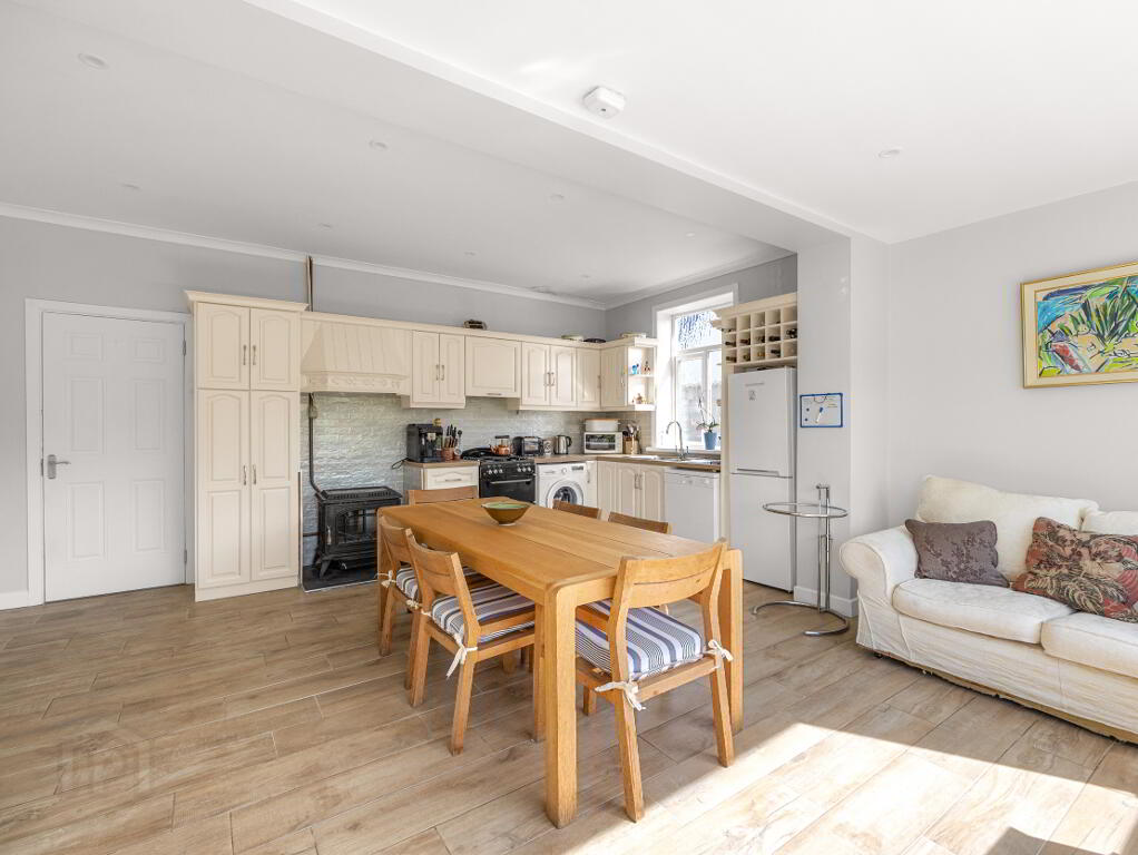 Kitchen/Dining Room: 17’8 x 18’6 – Generously sized and fully fitted, with a solid fuel stove