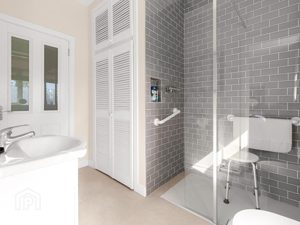 Family Bathroom: 10’0 x 7’0 – Walk-in shower, WC, WHB, and hot press
