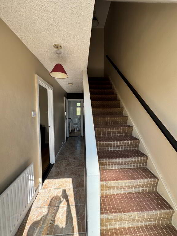 From Carrickmacross town centre, walk down Church Street, pass doctors surgery, take left turn opposite playground, continue for 100m, house on right hand side opposite day care centre.