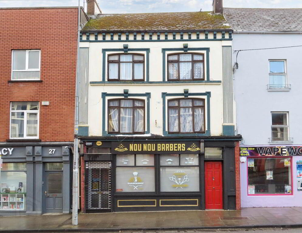 Shop area approx. 50 sqm with office and kitchenette at rear. Large window display area, single door with shutter. Yard and outside toilet to rear. Current yield from Barber shop €12,000 per annum