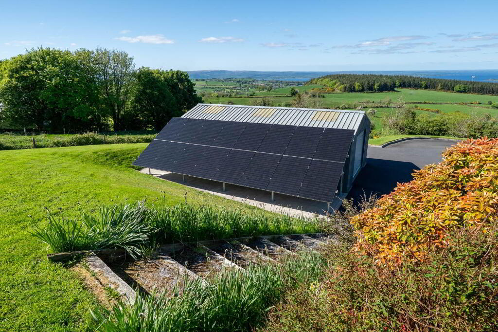 With a A3 energy rating, this home is highly efficient thanks to 16 solar panels for electricity and 2 dedicated to heating water. Additional features include triple glazed windows, oil fired central heating, a private well water supply, and wiring for an alarm system. Externally, the property continues to impress, with a tarmac driveway, beautifully landscaped gardens, and a detached garage, all set against the backdrop of the spectacular Lough Derg.