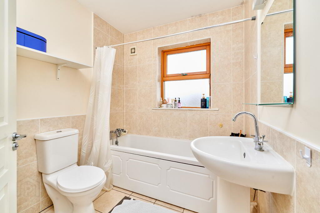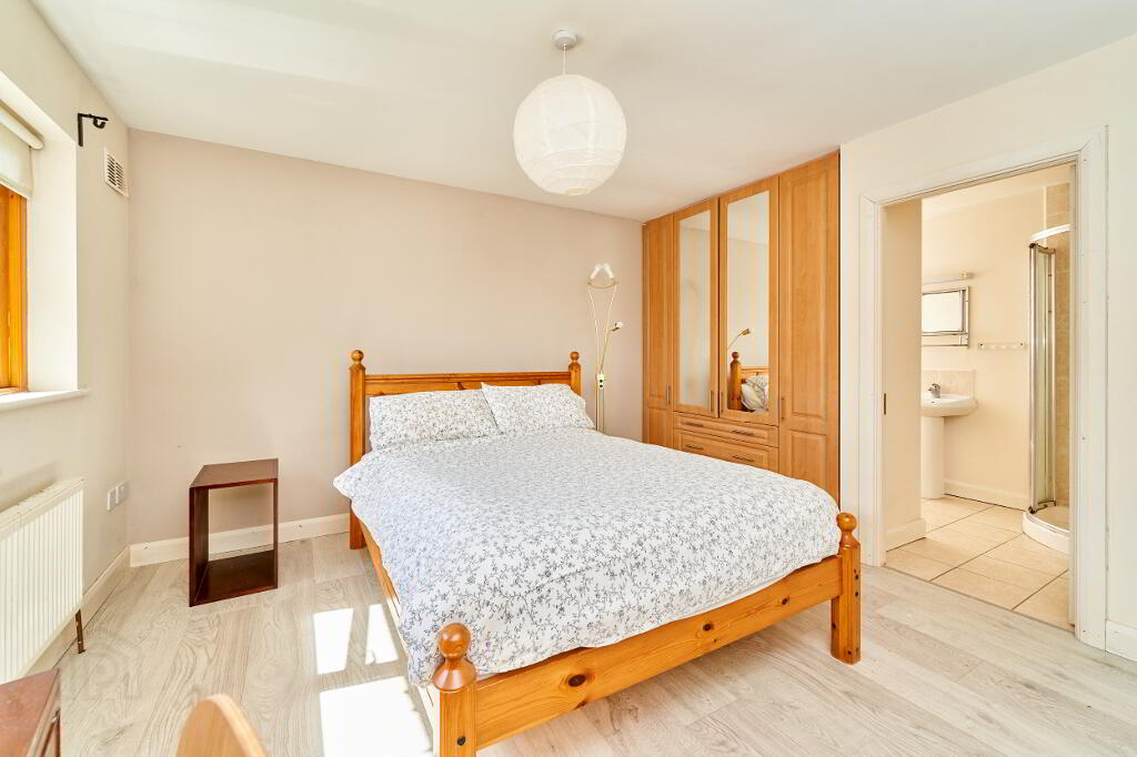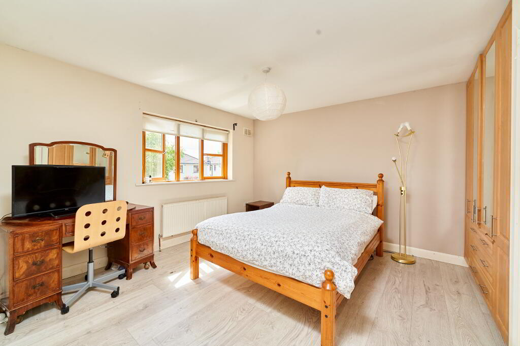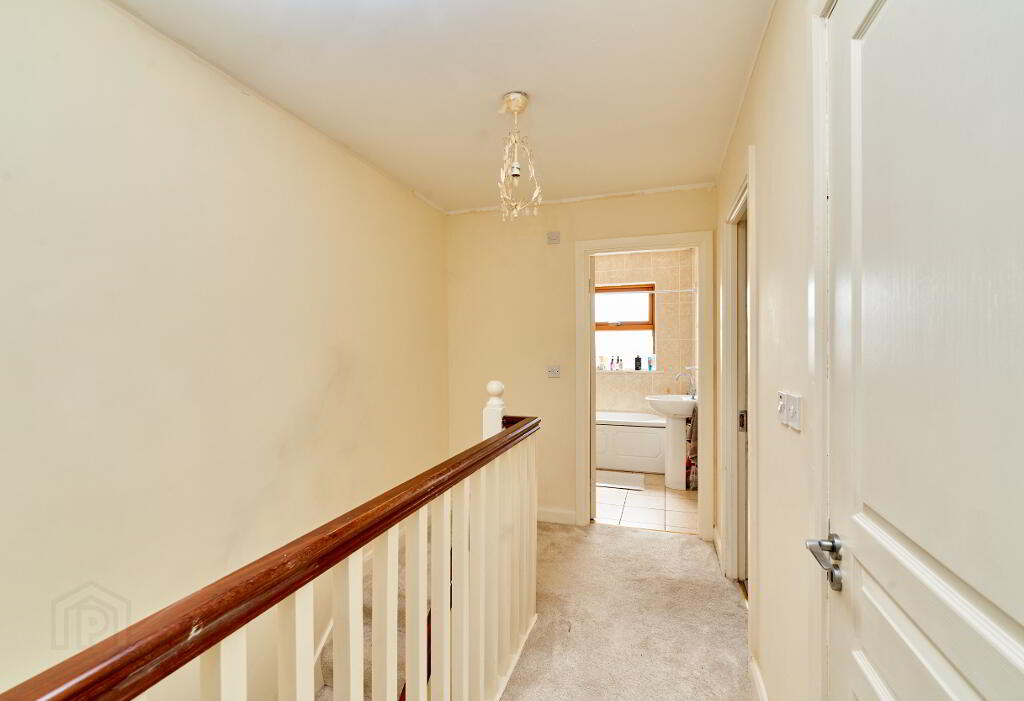Carpeted staircase guides to first floor landing, past shared family bathroom and hot press to the master bedroom which is light and airy, featuring built in wardrobes and benefitting from a large en suite.