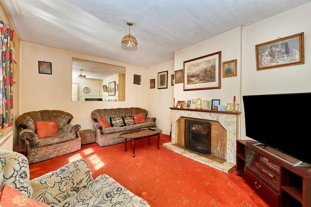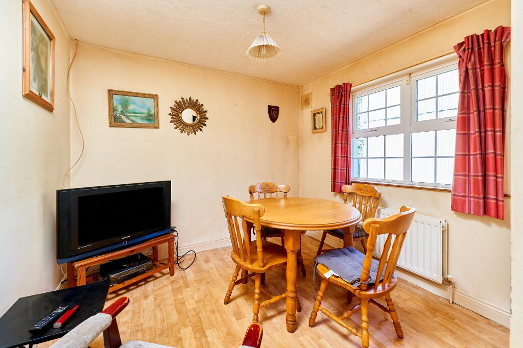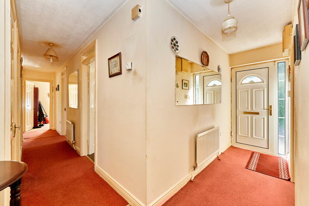 Stepping through the front door, entrance hall guides past a sitting room with open fire and on to kitchen with separate dining space, the hallway continues past a shared family bathroom and hot press, leading to five bedrooms.