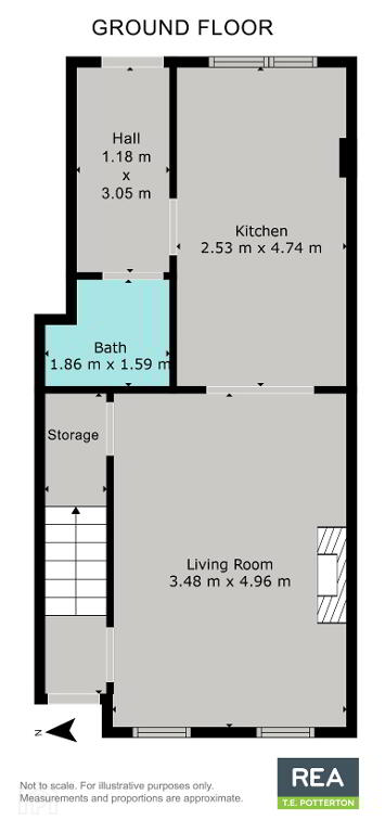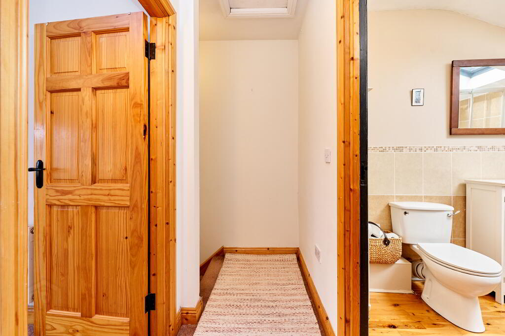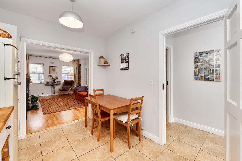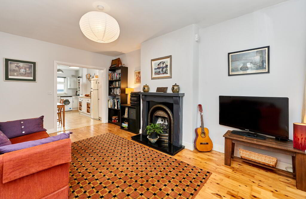 Stepping through the front door, a hallway guides into a surprisingly spacious sitting room featuring open fire that could be reinstated should one desire and under stairs storage.