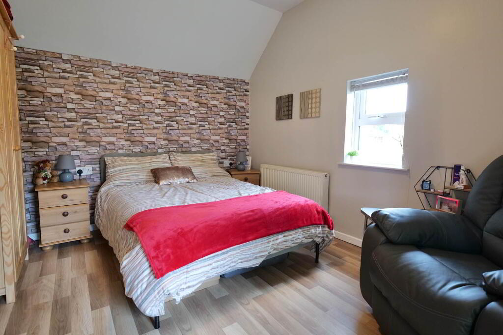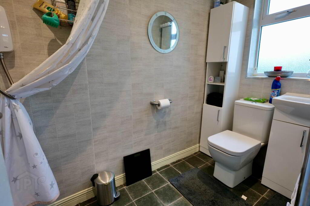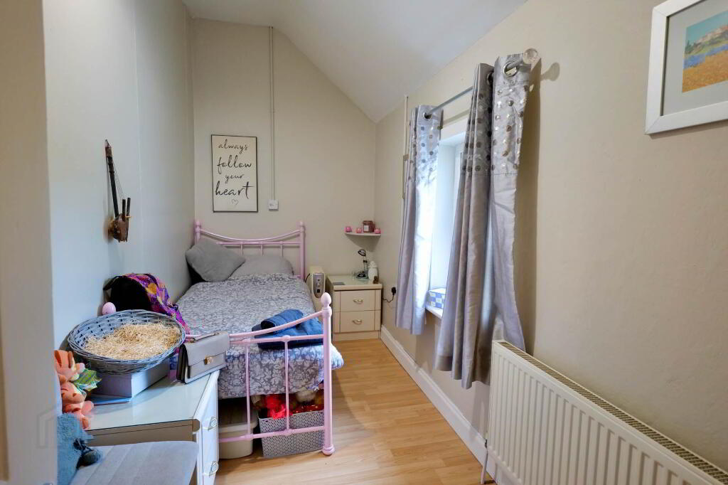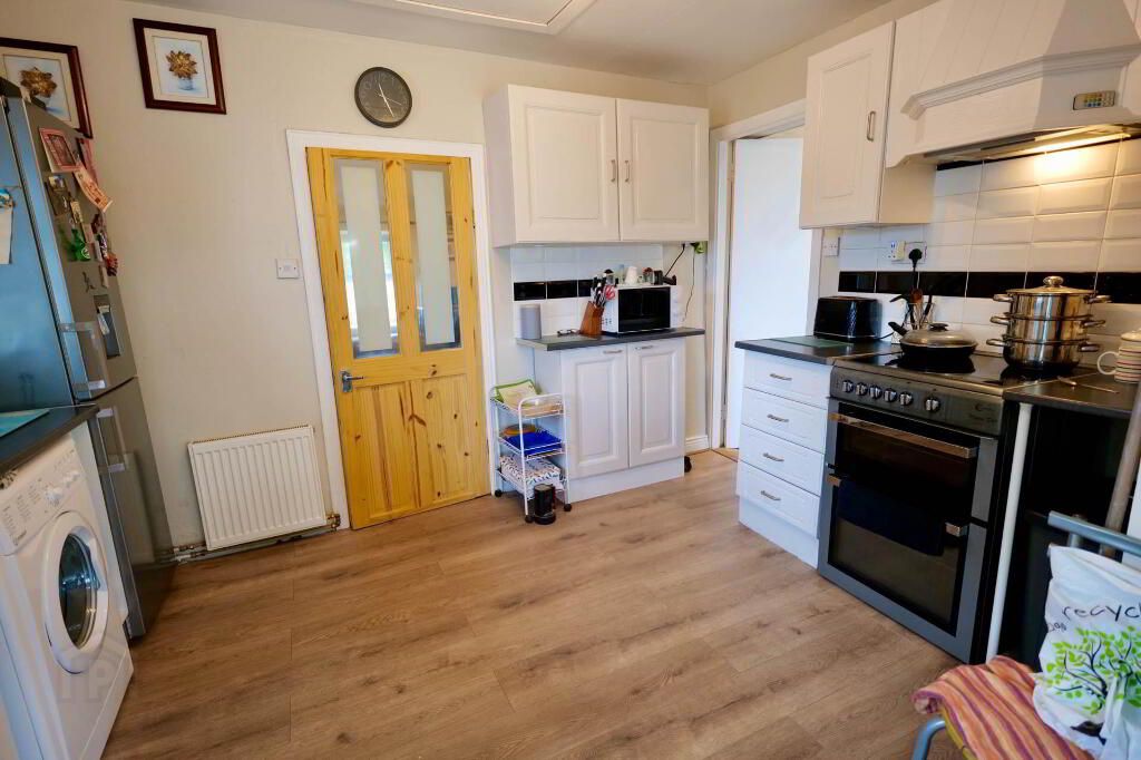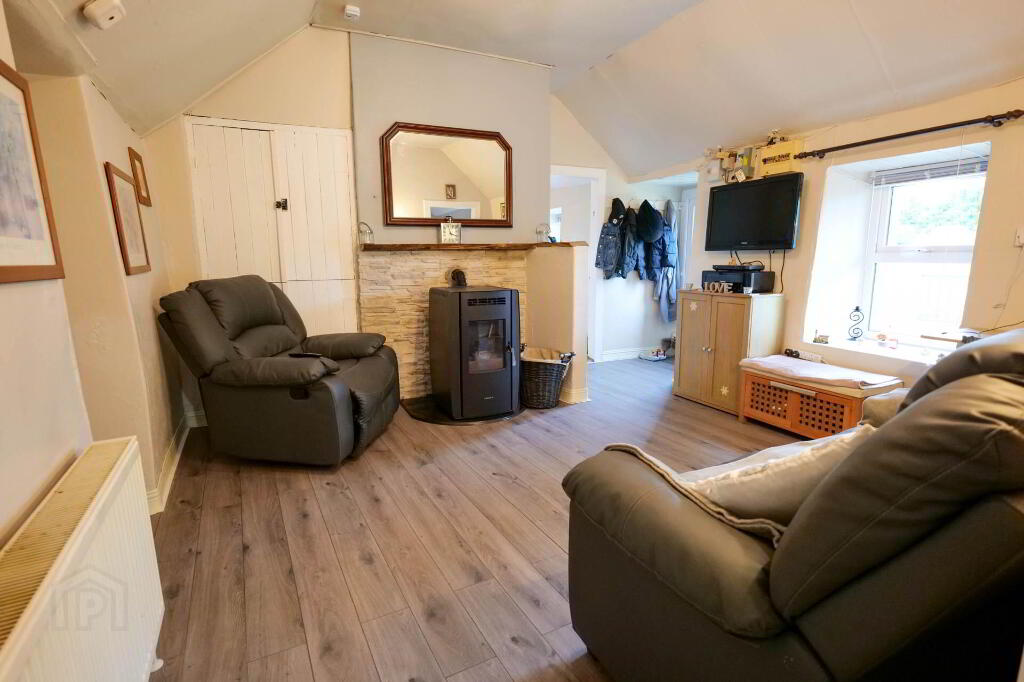 Beautifully finished throughout with a modern décor, the property comprises of a sitting room with pellet stove which leads through into the kitchen, nicely presented with white kitchen units. This leads through into a large bright sun room with laminate flooring and French doors out to the rear patio.