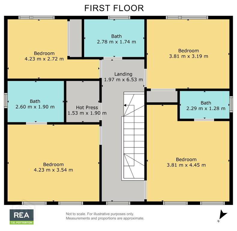 Staircase guides to first floor landing past a hot press where one finds four further well-appointed bedrooms, two of which have the added benefit of being en suite, a shared family bathroom completes the accommodation.