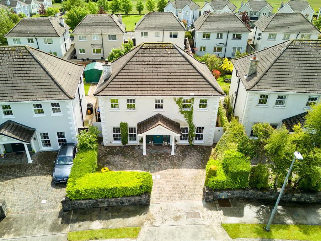 Set back from the main road, overlooking a vast green space guarding the entrance to an exclusive family estate, and positioned in a row of only five similar properties in a quiet cul de sac, number 14 boasts an impressive and imposing residence standing proud on a substantial site and gardens.