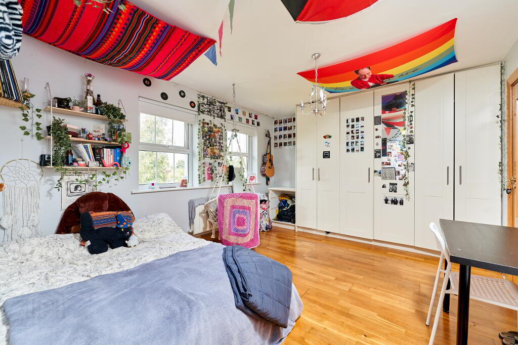The ground floor is completed by what was originally constructed as the main family room, but which now houses a downstairs bedroom with fireplace.