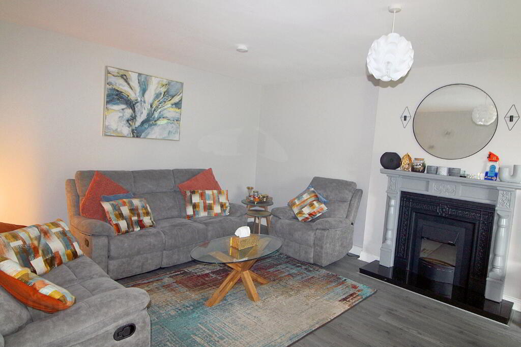 60 Rockfield Manor is a bright and spacious home with a practical layout suited to all aspects of family life. The accommodation includes: Entrance hallway with tiled flooring, living room filled with natural light from the large box window, wood effect tiled flooring and feature fireplace. large family kitchen / dining room with tiled flooring and patio doors to back garden. A guest WC completes the ground floor living space. Upstairs, 4 bedrooms, main bedroom with an en-suite shower room, 3 of the bedrooms are good sized double rooms with the 4th bedroom currently in use as a home office, family bathroom. Gas fired central heating and double glazed windows. Garden to front and enclosed to back with ample off street parking.