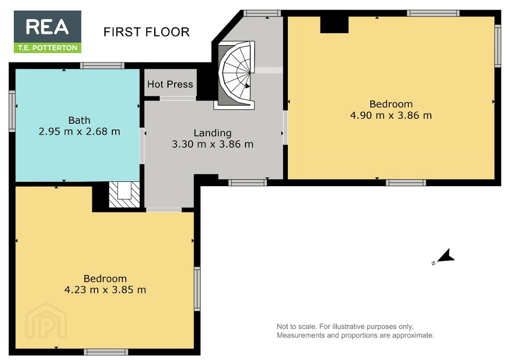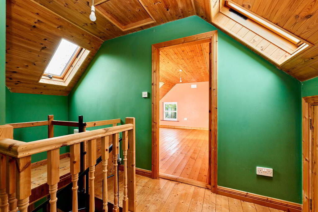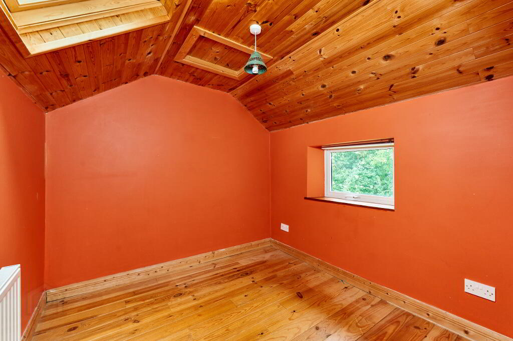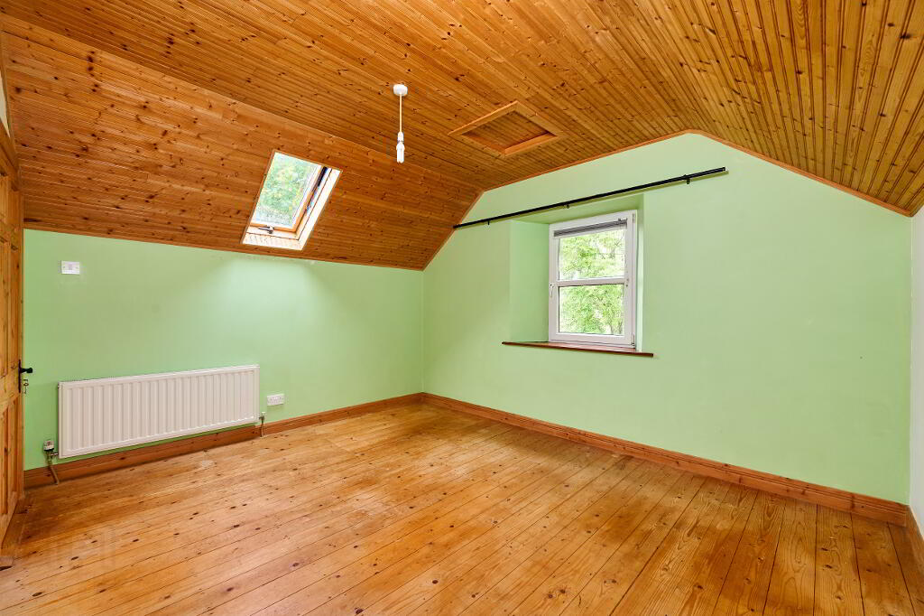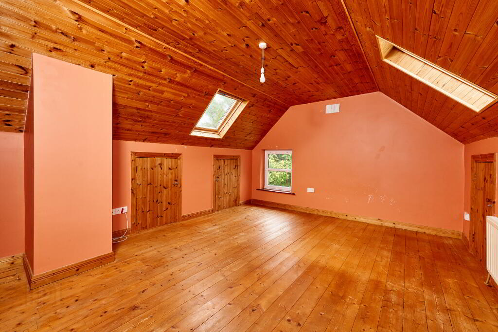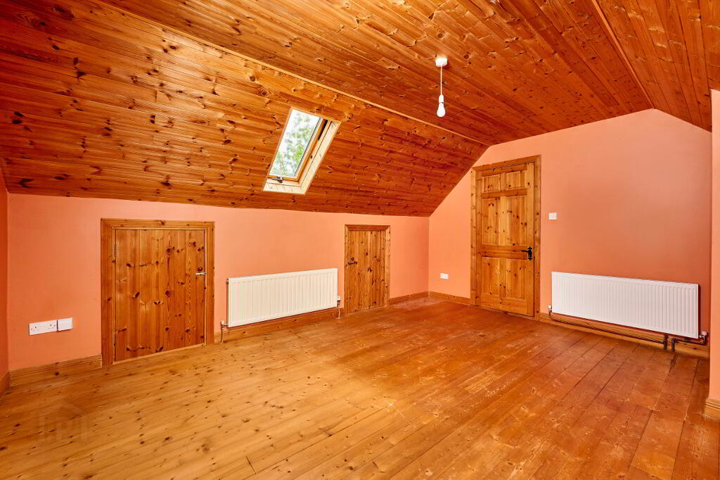 Spiral staircase guides to first floor landing, featuring a sizeable hot press and shared family bathroom with another solid fuel stove, two sizeable double bedrooms complete the accommodation, the master of which benefits from ample storage. Hardwood floors continue throughout the property.
