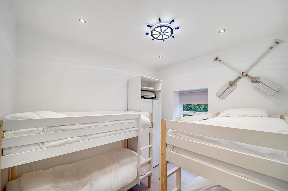 4.40m x 2.80m Front facing bedroom with bay window. Herringbone vinyl flooring. Recessed lighting and panelled wall with fitted walllights matching ceiling light and some recessed ceiling lights.