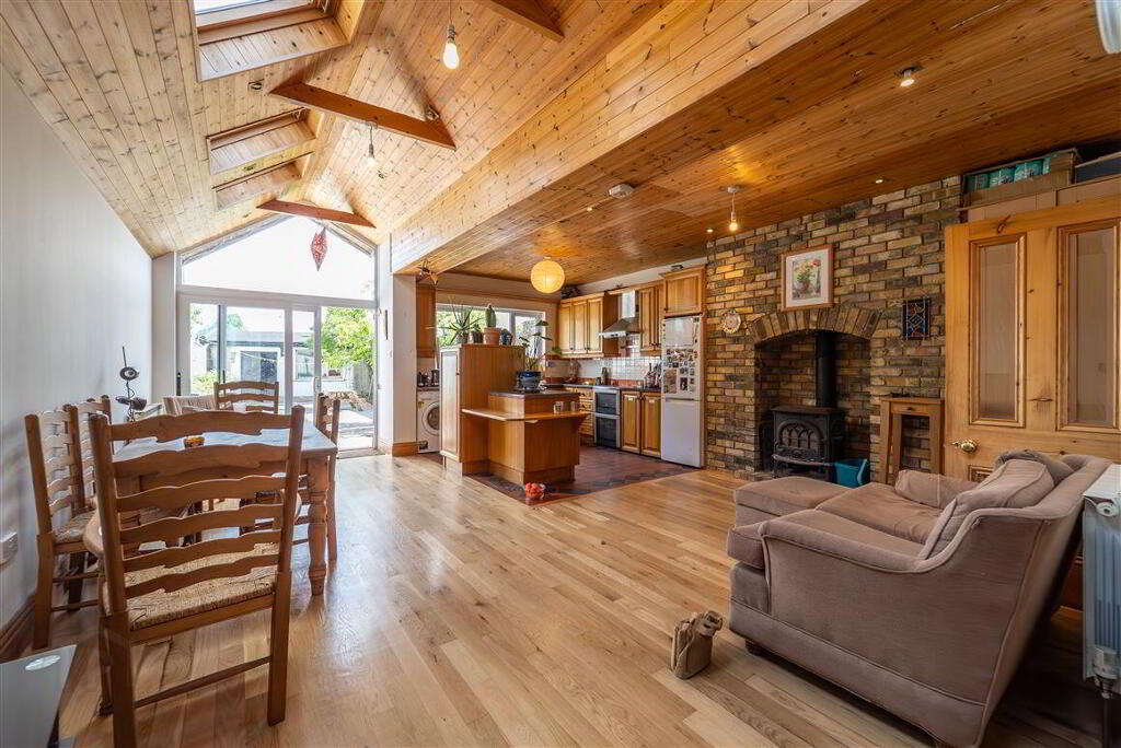 The feature original staircase leads to the first floor which hosts three large bedrooms and the main family bathroom. On the top floor, you'll find an additional large double bedroom. There are abundant bespoke storage solutions throughout this cleverly designed home.