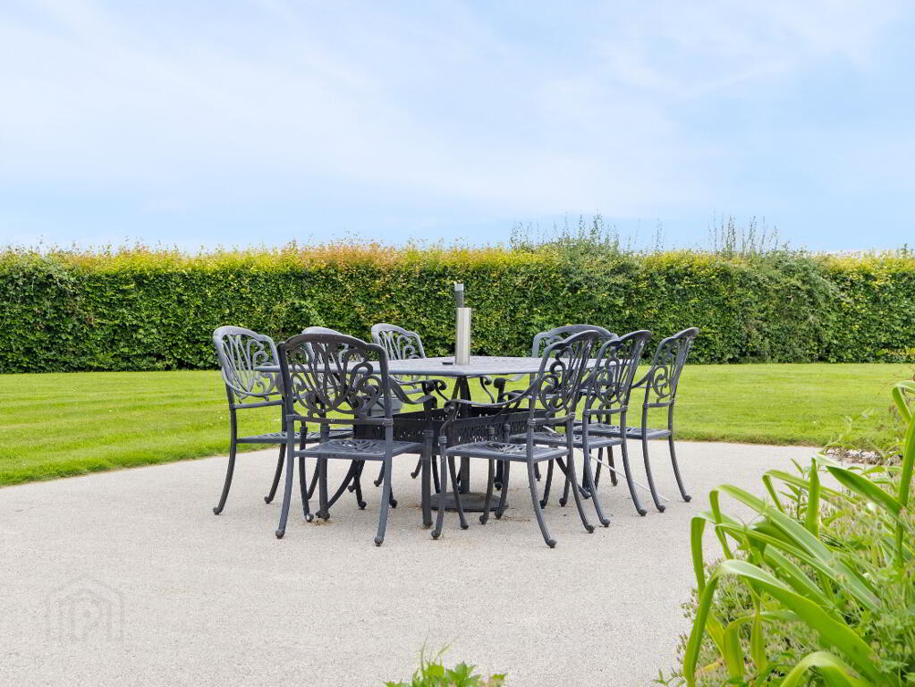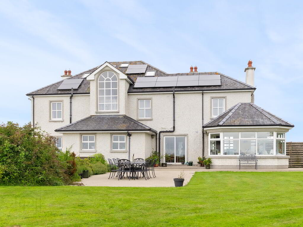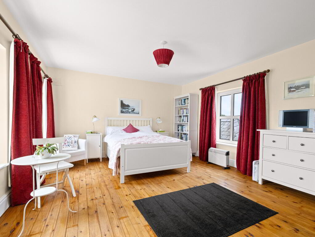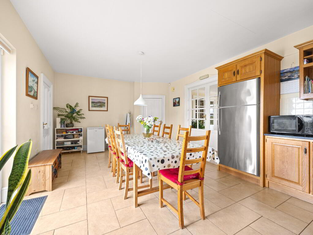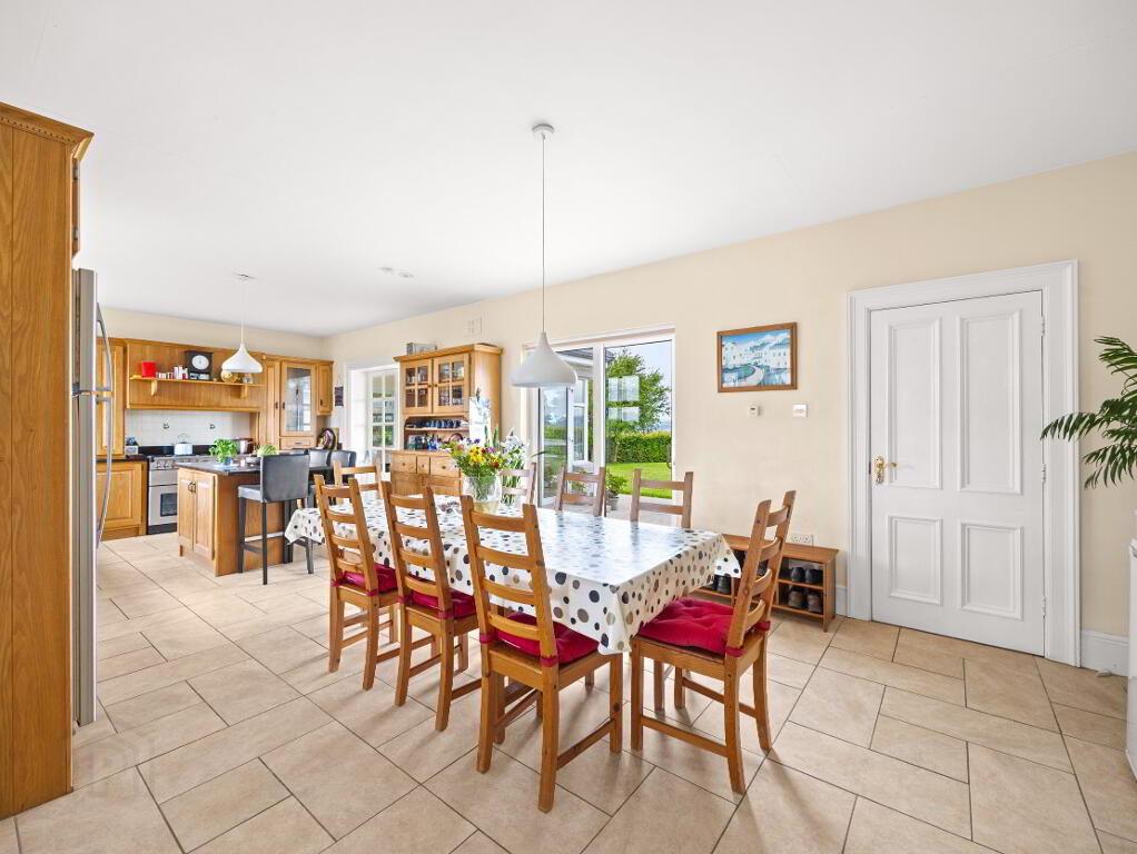 Constructed with a lime plaster finish and natural slate roof, the residence offers bright, spacious accommodation including two elegant reception rooms, a well-appointed kitchen, sunroom, and six bedrooms arranged over the first and second floors.