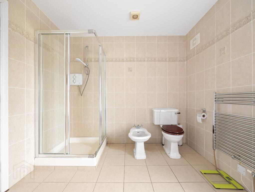 Bathroom 3.45 x 2.82 wc, whb, bidet, bath, electric shower, fully tiled