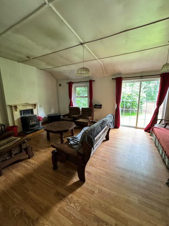Sitting room: (4.5m x 6.2m) Wooden floor, Stove